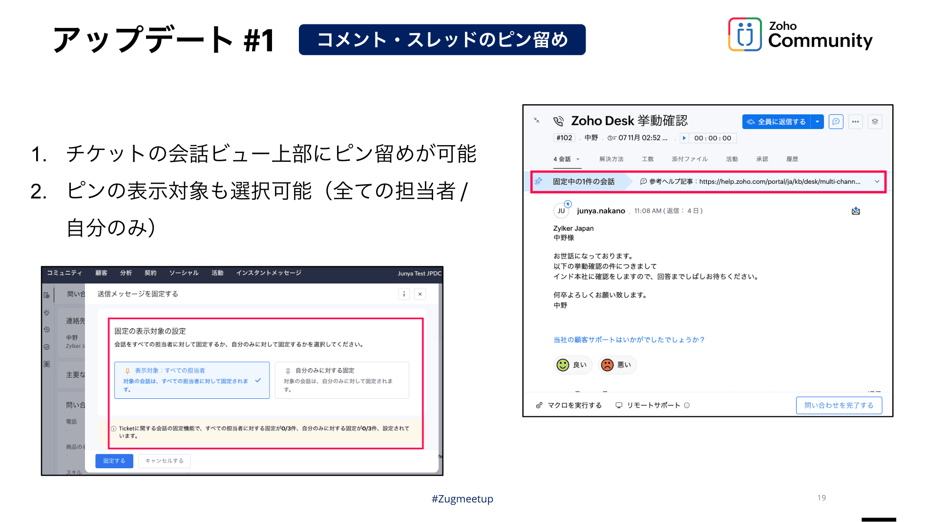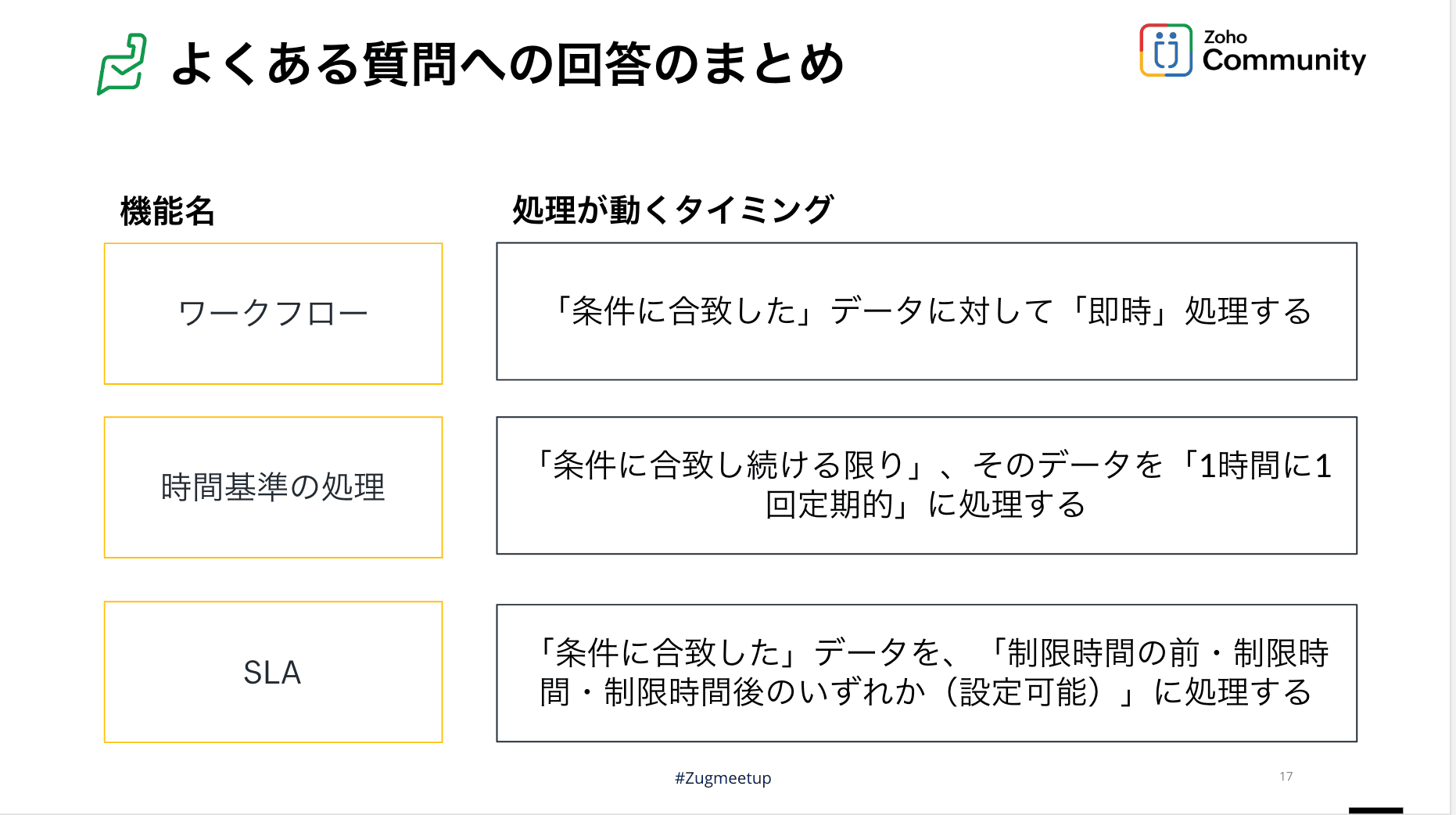 これまでも交流会のセッショントピックとして取り上げて欲しいと要望の多かったZoho Desk ですが、今回は「サポート窓口によくあるFAQ」と「最新のアップデート情報」の2軸で紹介しました。
