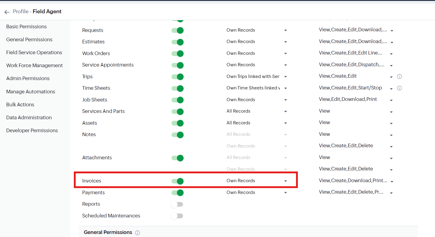 When we do that, the "Owner" of the invoice in Zoho FSM is defaulted to the SuperAdmin. This prevent the field agent to access the invoice when the profile permission we use is "Own Records" for Invoices.