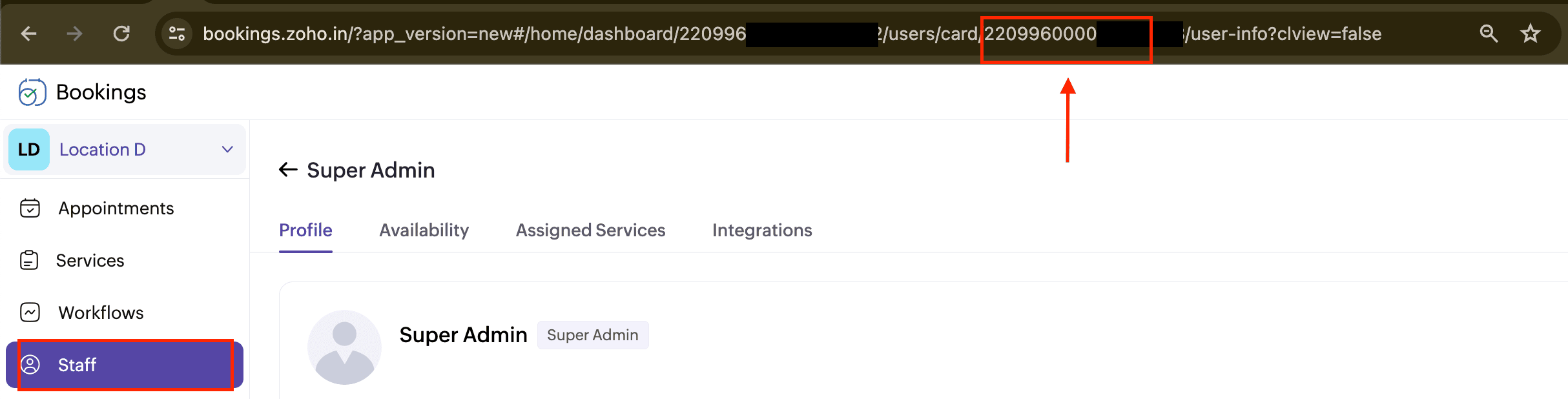 Simply pass the Workspace ID and Staff ID while making API calls.