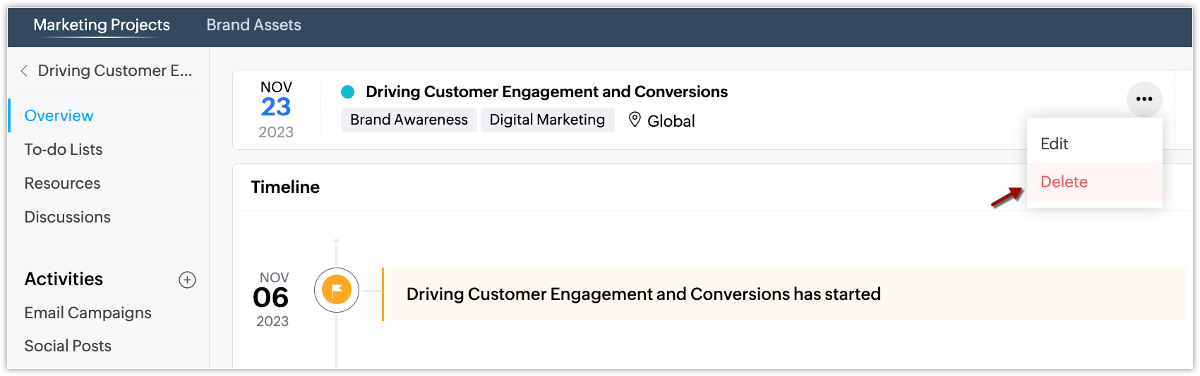 Marketing projects can be directly deleted by the project owners, or the administrators under the following conditions: