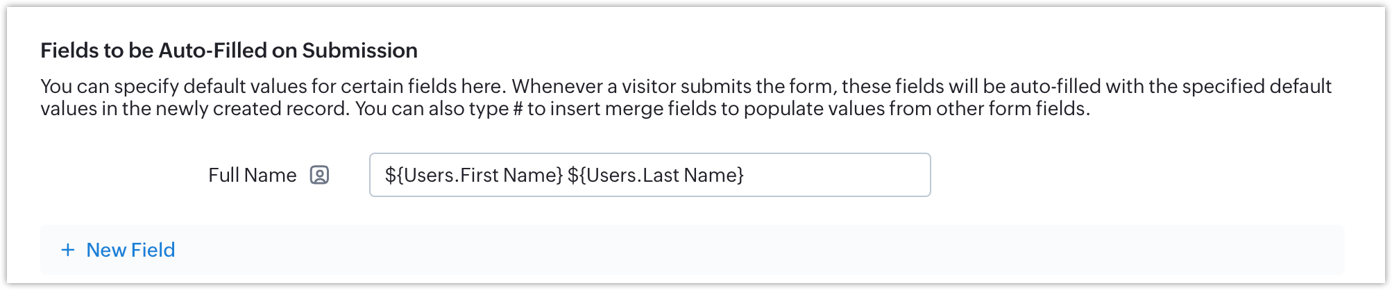To do so, select the field you want to auto-fill, click the # merge icon, and insert the appropriate merge fields.