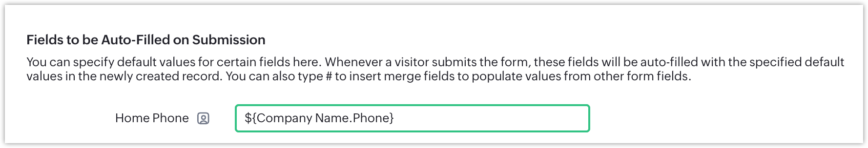 Similarly, if you collect a contact's phone number and want to see the same number as their company's phone number, you can set the company phone field to be auto-filled using the contact's phone number instead of asking for it again or updating it manually.