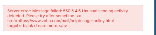Server error: Message failed: 550 5.4.6 Unusual sending activity
