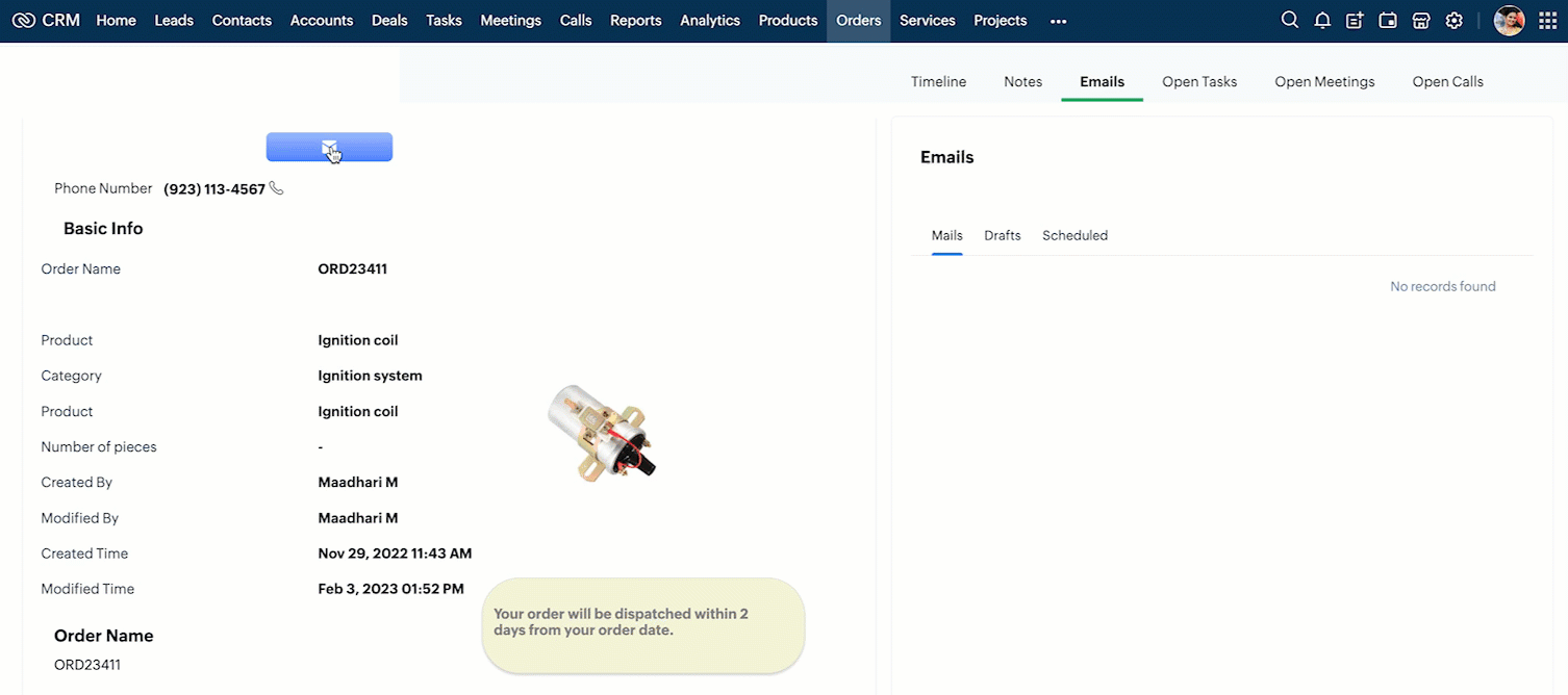 var isProceed = ZDK.Client.showConfirmation('Do you want to open the mailer window?','Proceed','Cancel'); if (isProceed) { ZDK.Client.openMailer({ from: '', to: [{ email: '', label: 'ABC Industries' }], cc: [{ email: '', label: 'ABC Industries' }], subject: 'Greetings from ABC Industries!', body: ' ' }); } |