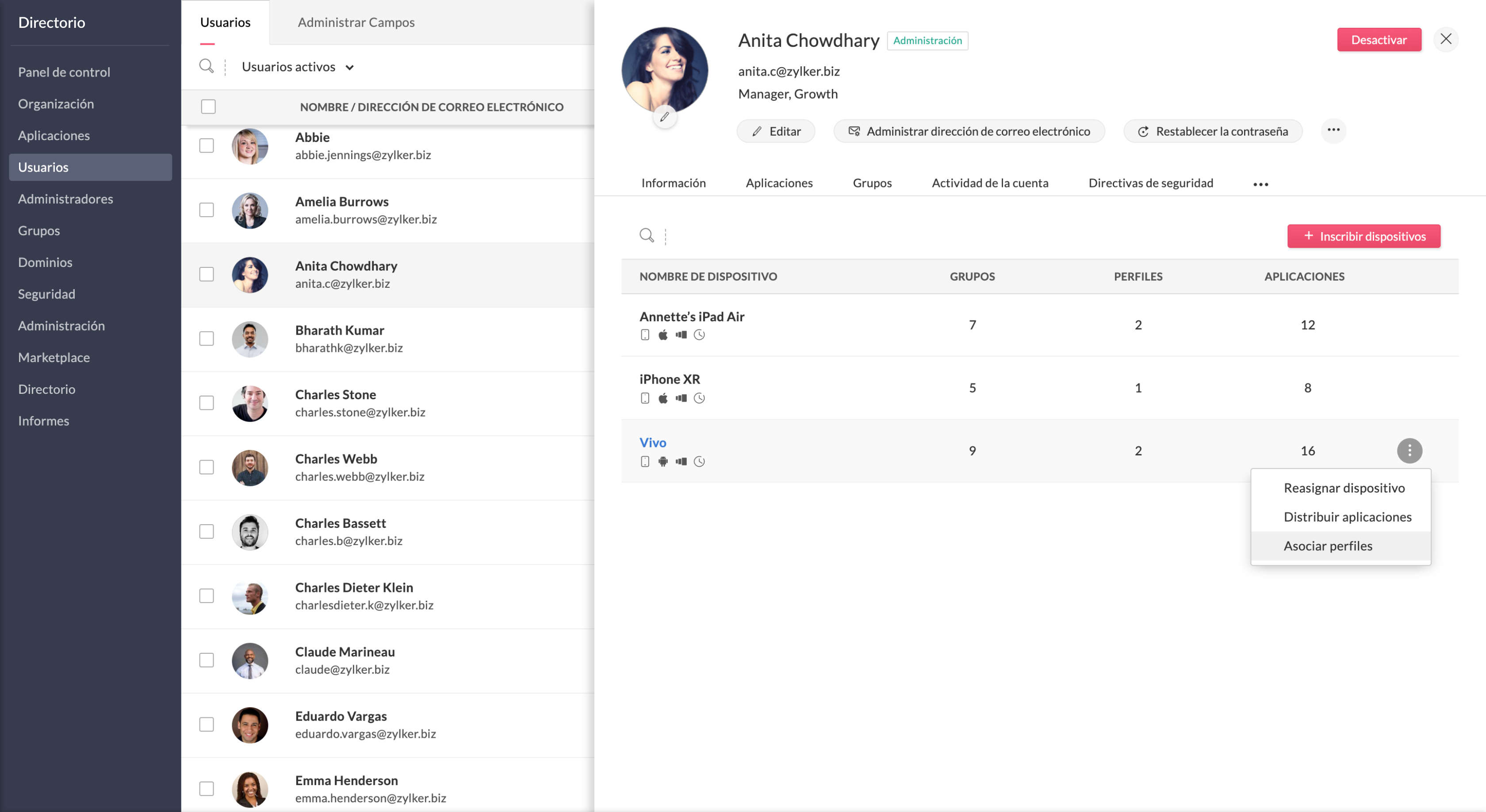 - Mobile Application Management (MAM) y Mobile Device Management (MDM): Con el trabajo remoto ahora persistente, Zoho One ahora incluye la capacidad de gestión de aplicaciones móviles de nivel empresarial. Los administradores pueden añadir y gestionar fácilmente todos los dispositivos de sus usuarios para tener una mejor visión y control del aprovisionamiento, los permisos y las políticas específicas de las aplicaciones, el bloqueo y la eliminación de los dispositivos de forma remota, y más, para apoyar la movilidad y la flexibilidad de los empleados.