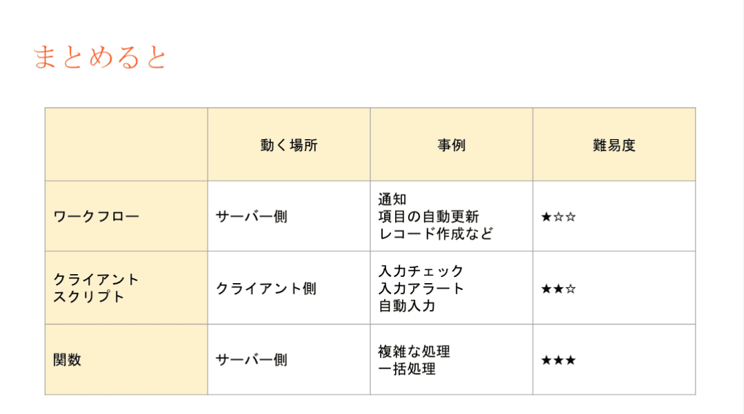 本セッションでは、私自身の経験をもとに、ワークフロー/クライアントスクリプト/関数の3つにフォーカスし、それぞれの特徴と活用シーンをご紹介しました。