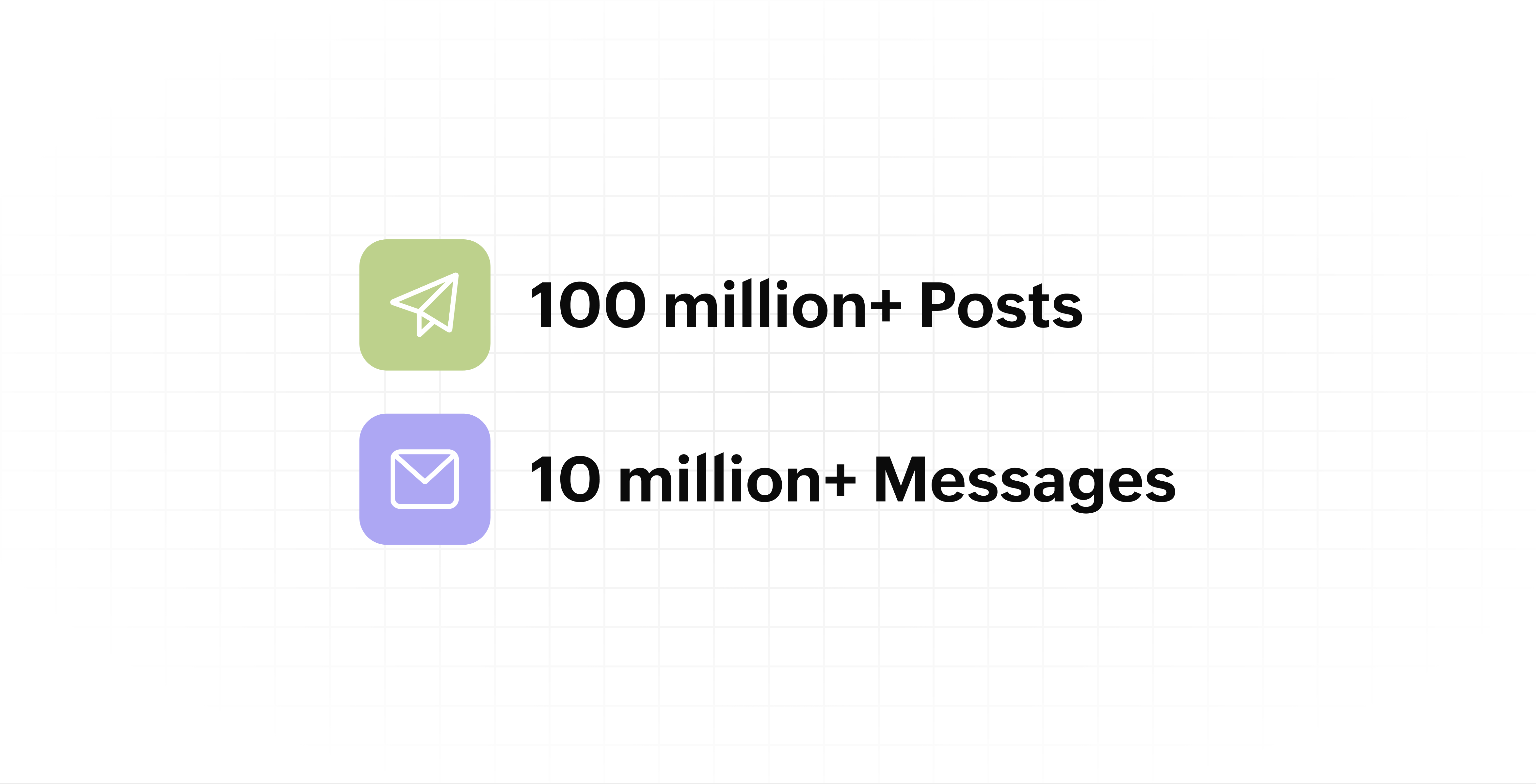 - Processed and published 100 million+ posts with more than 24k posts published or scheduled in a day and 10 million+ messages