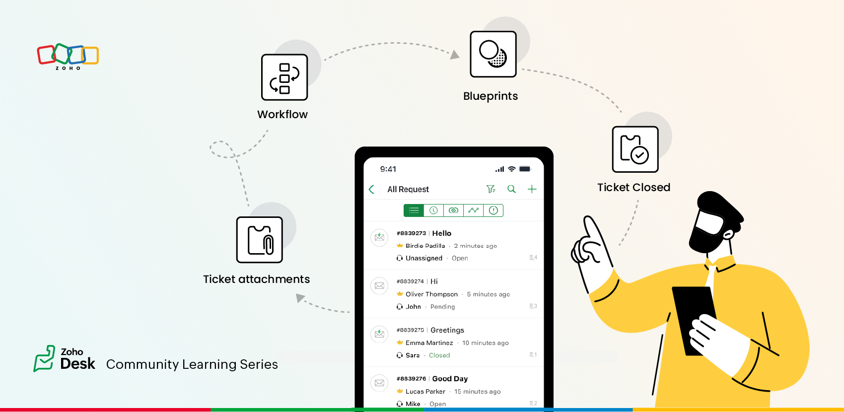 Mobile workflows can help you offer efficient support to your customers as well as manage internal operations effectively with the Zoho Desk mobile app.