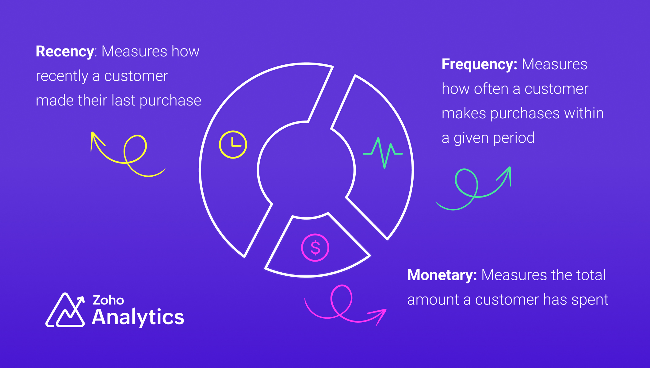 RFM analysis (Recency, Frequency and Monetary) is a method used to identify and segment existing customers based on their purchasing behavior. The key metrics of RFM analysis include