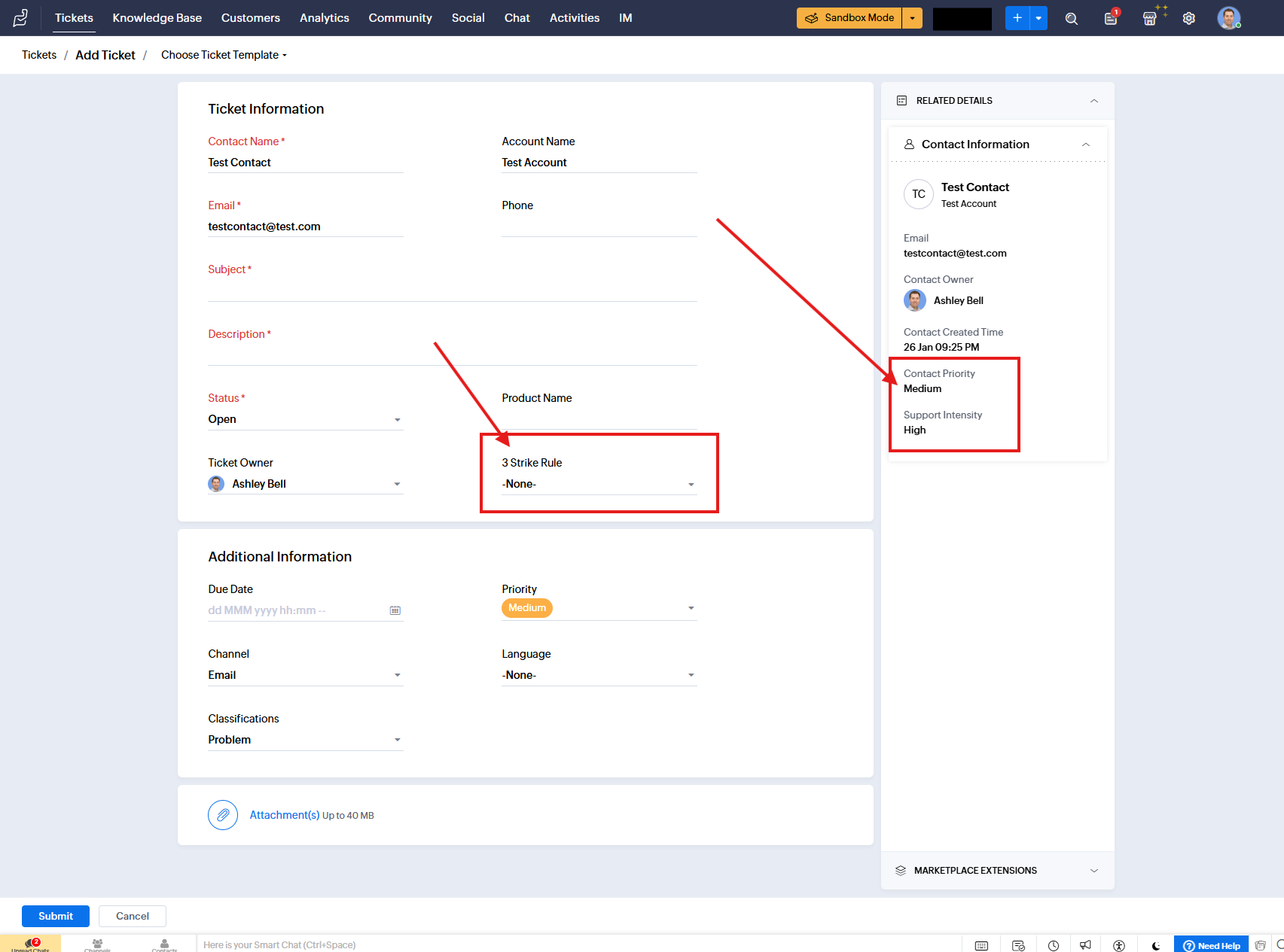 Hi Desk Team, I have 2 feature requests for you. Since Coloured Picklists are now available in Desk, It would be great if the colours were visible on the Related Details (Contact Information) when creating a ticket. In the screenshot below, I have 2 fields