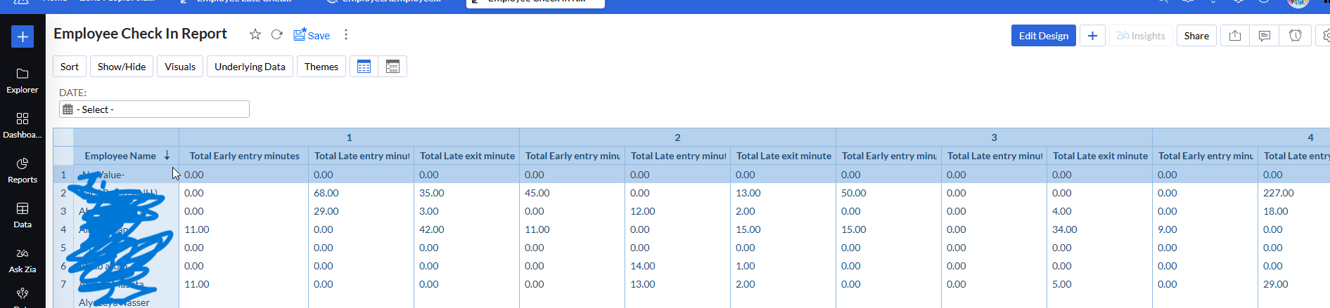 I am creating Early/late Check and check out  in  pivot report based on Zoho analytics