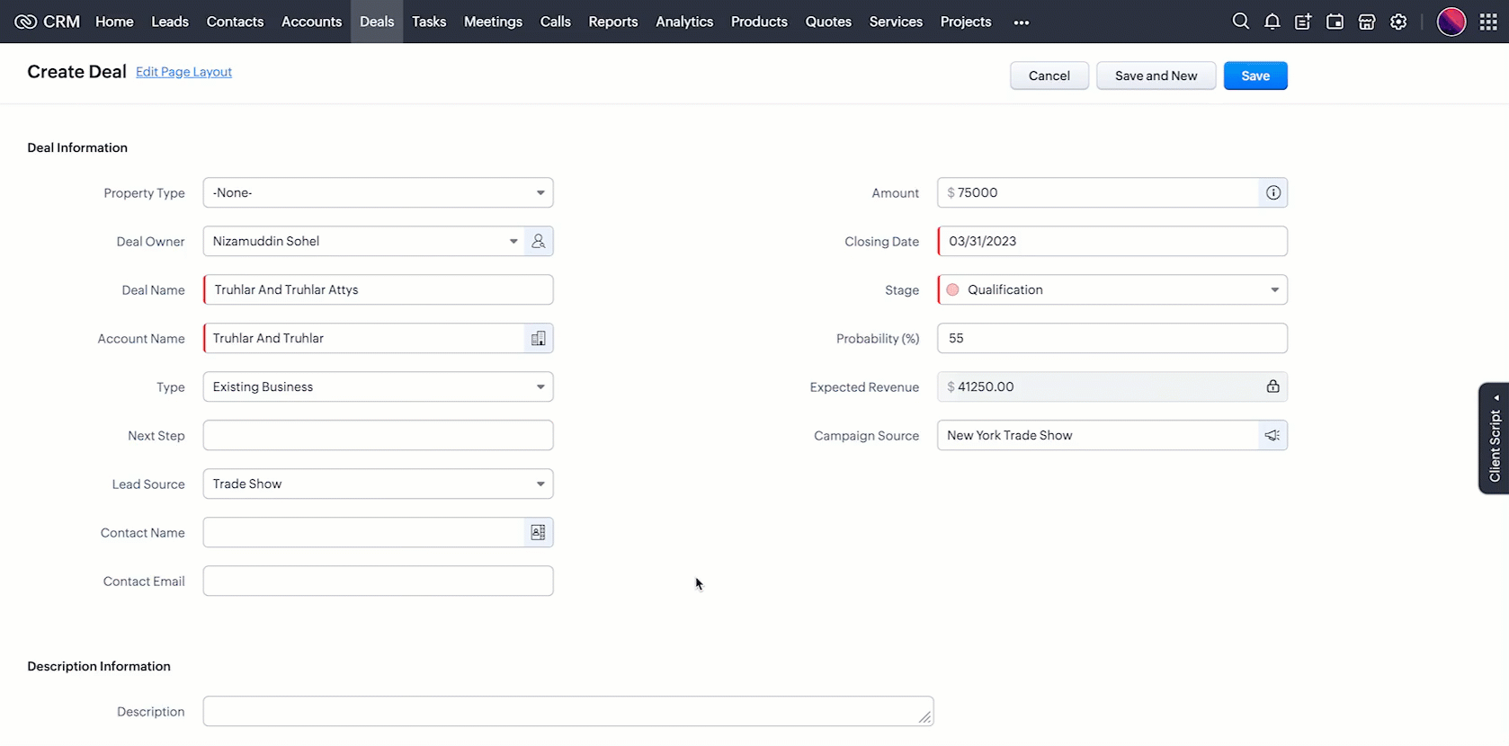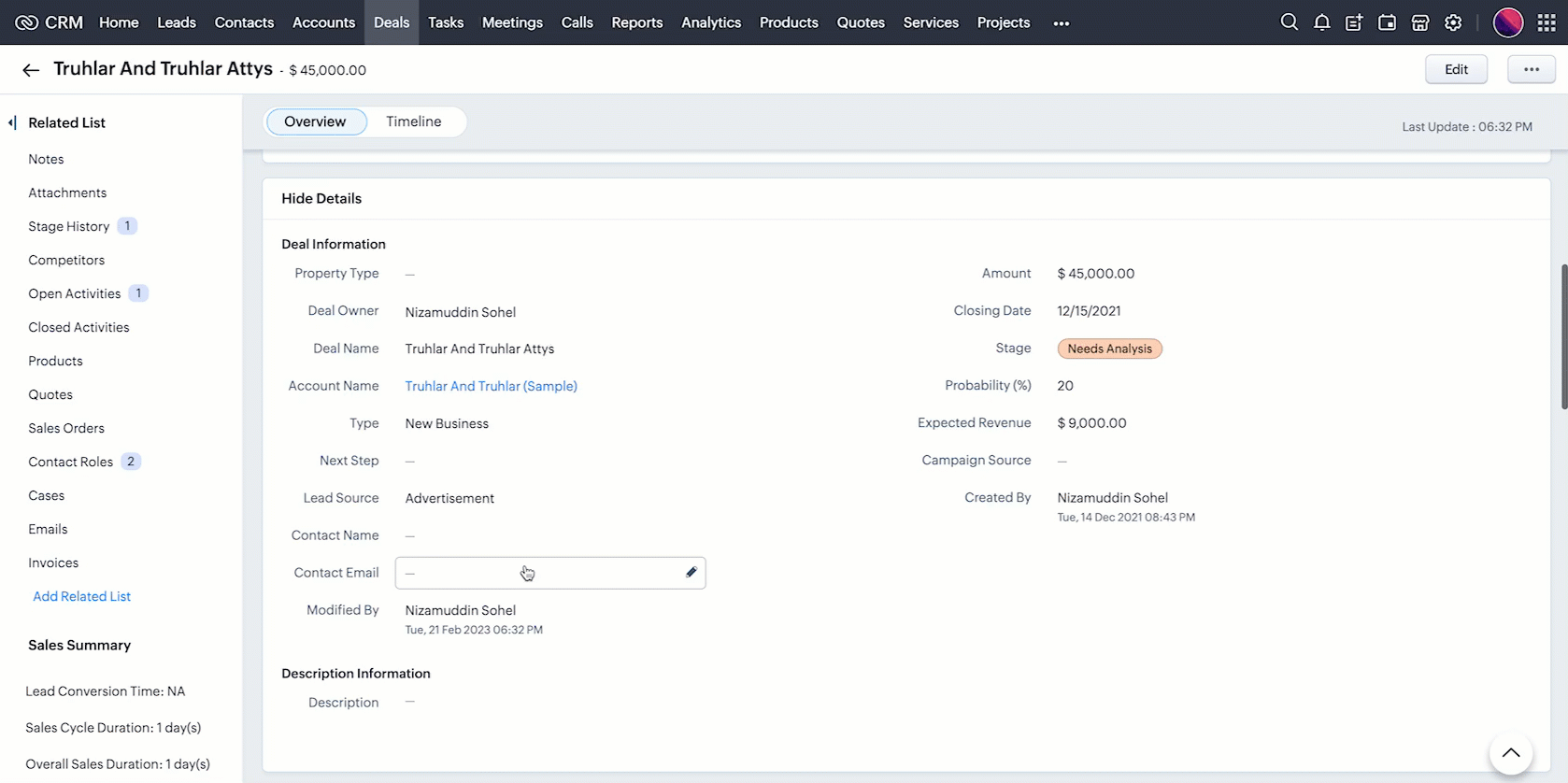 Until recently, the usage of lookup fields was restricted only to associating the primary field values for the particular module. After looking up for contacts to associate with a deal, only the contact name would be available in the deals module. However, there can be situations when you need additional related details from the lookup module about the record that was associated, for example, the contact's number, or email address.