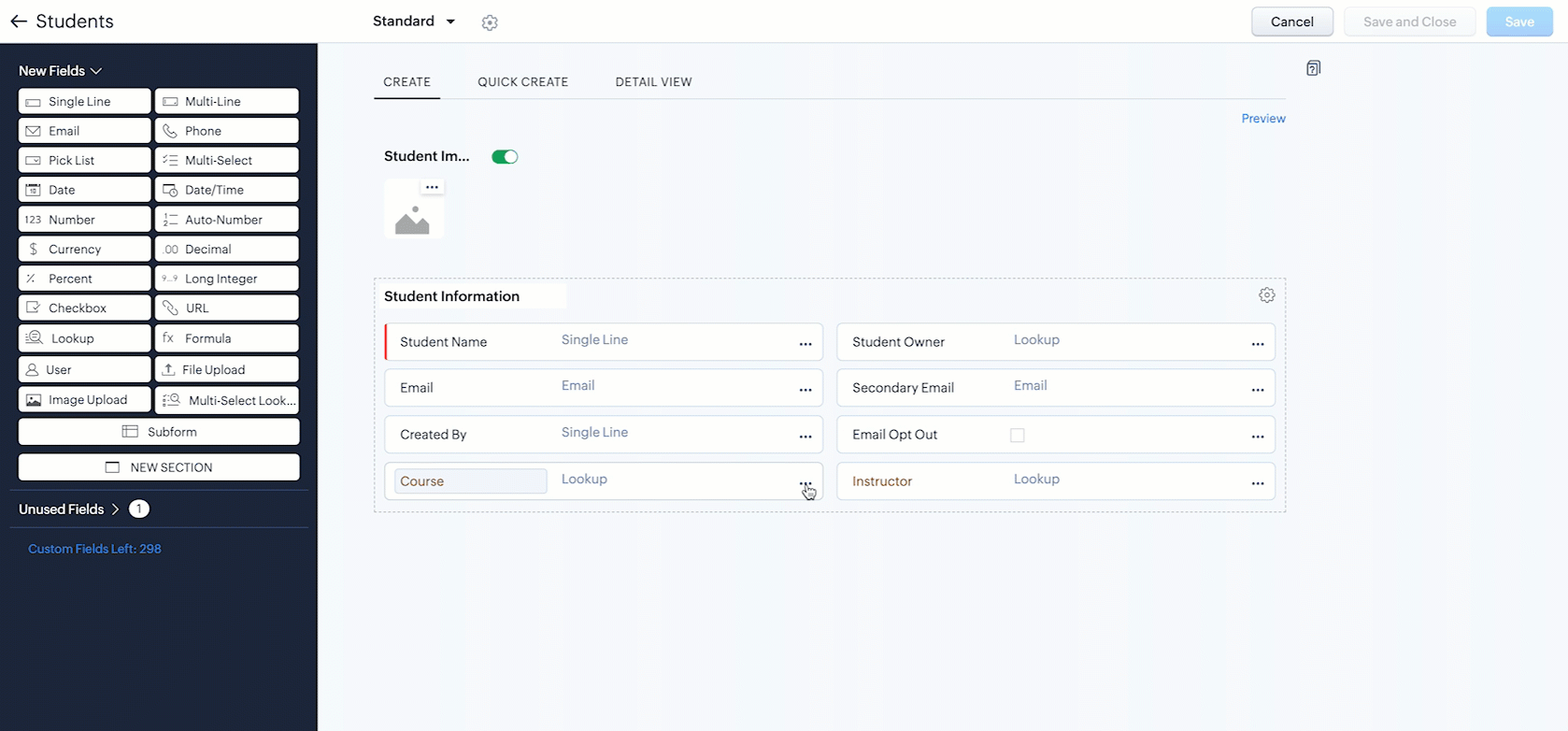 . Again, let's say, you need to have the course instructor field, and a custom field for the instructor is already existing in the students module. Hence, you can choose the option to map with the existing field.