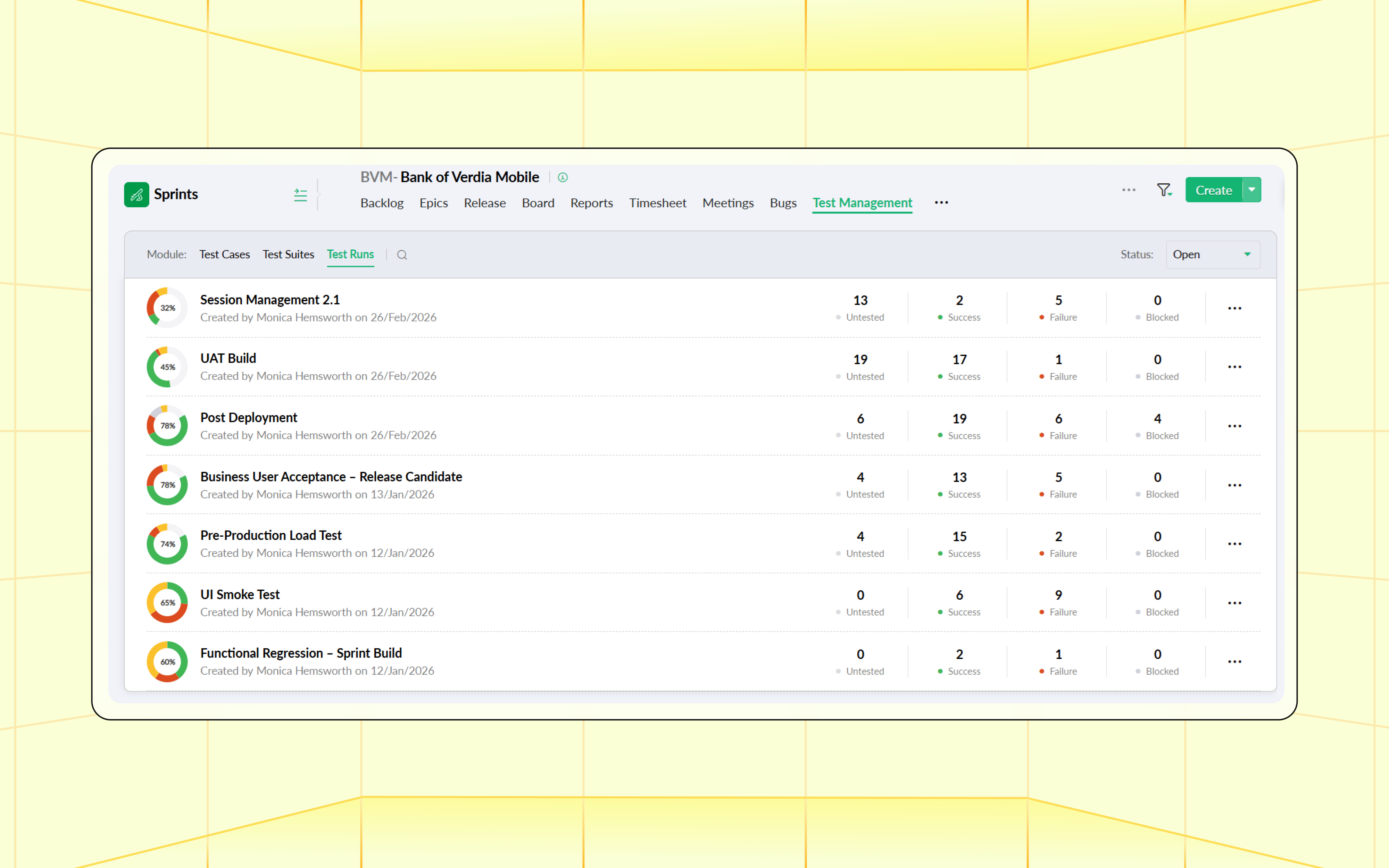 Unify your testing cycle end-to-end within the confines of a single module: Plan, structure, and execute your testing process in one place.
