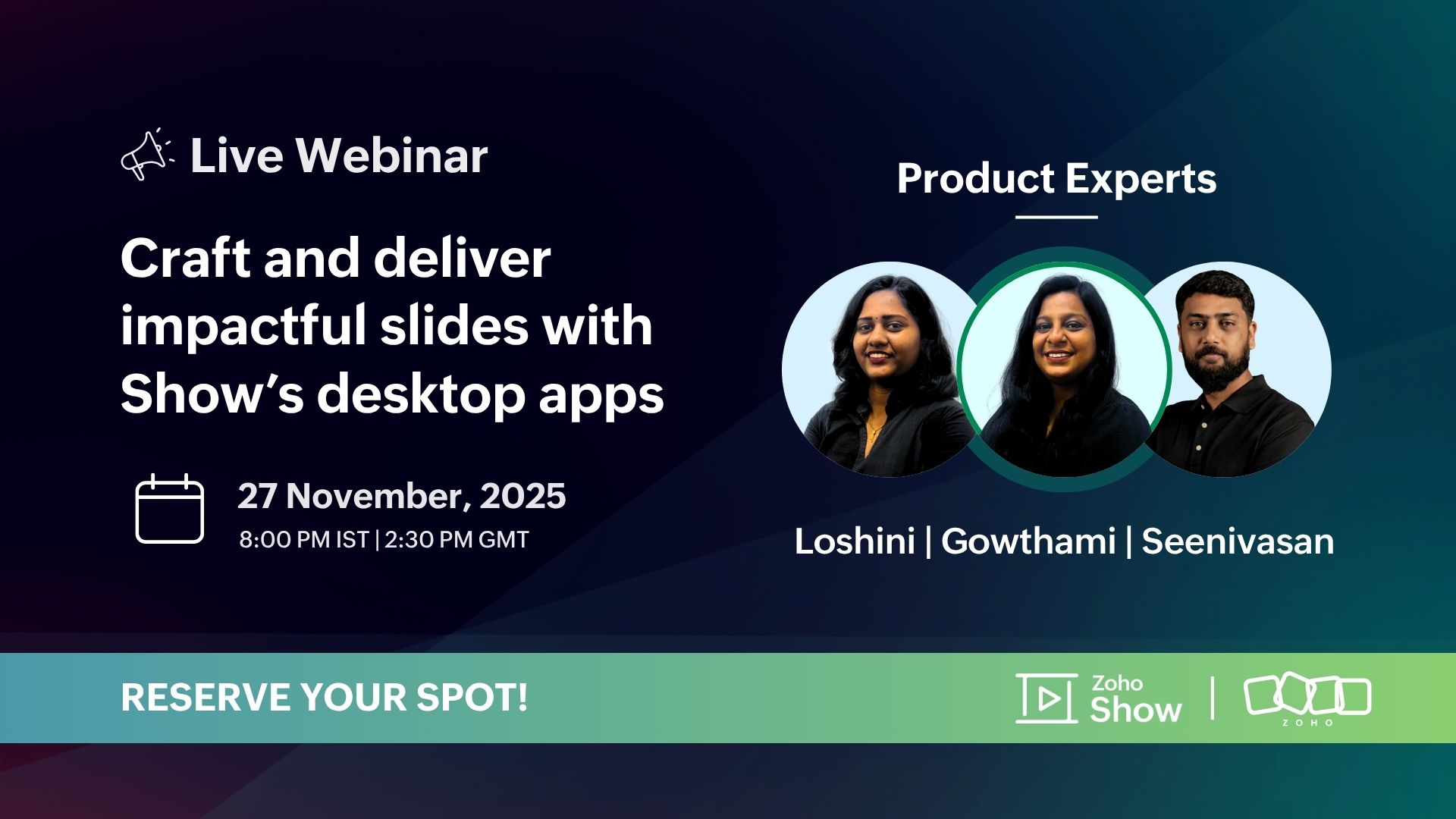 If you love the comfort of working on your desktop and want a setup that keeps you focused and uninterrupted, this session is made for you. We’re excited to invite you to our upcoming live webinar: "Craft and deliver impactful slides with Show's desktop