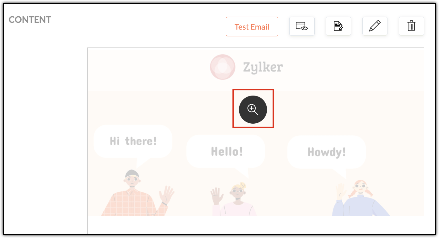 • Always preview: Use Zoho Campaigns' built-in desktop and mobile previews to catch layout issues before sending. Click each campaign's magnifier button (in the Content section) to preview for desktop and mobile.