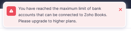 I'm currently setting up Zoho Books in order to migrate at the start of our next financial year (April) and while adding bank accounts I've tried to add a second account from the same bank and receive an error about the maximum limit of bank accounts.