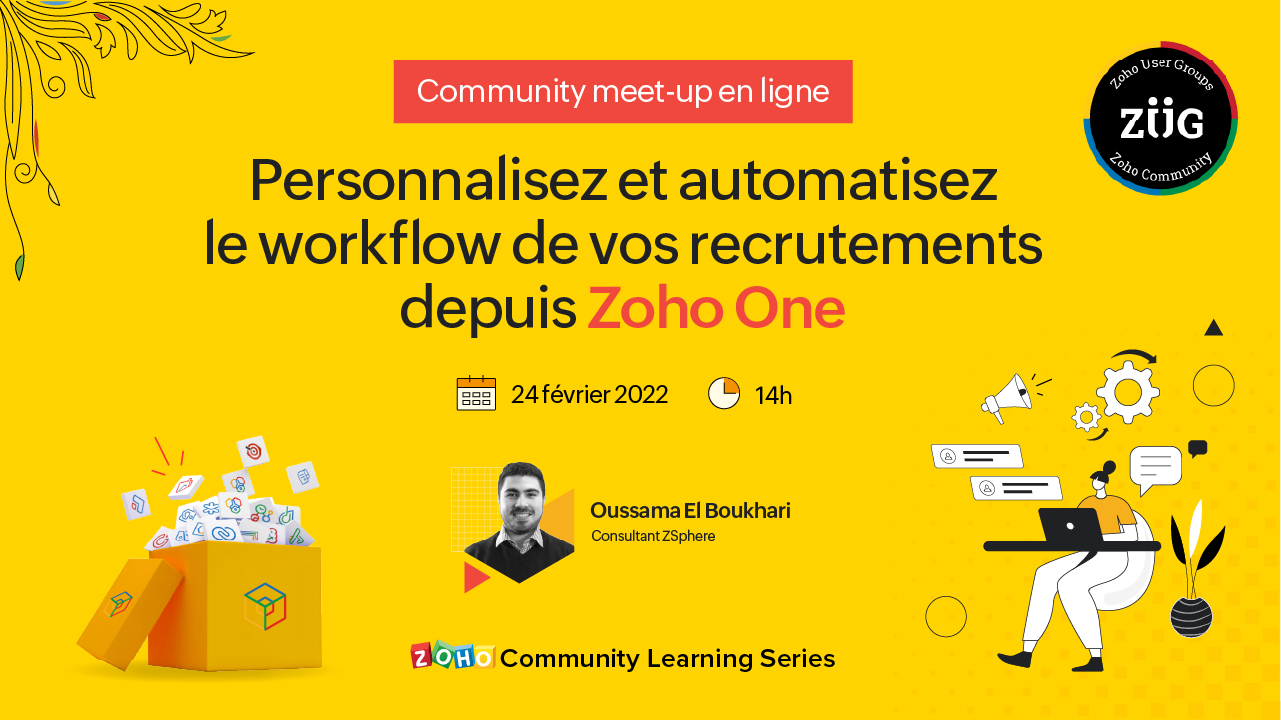Dans notre premier Meet-up en ligne 2022, jeudi 24 février à 14h, nous vous découvrirons comment vous pouvez personnaliser et automatiser le workflow de vos recrutements depuis Zoho One. La session sera animée par Oussama El Boukhari, consultant Zoho chez ZSphere.