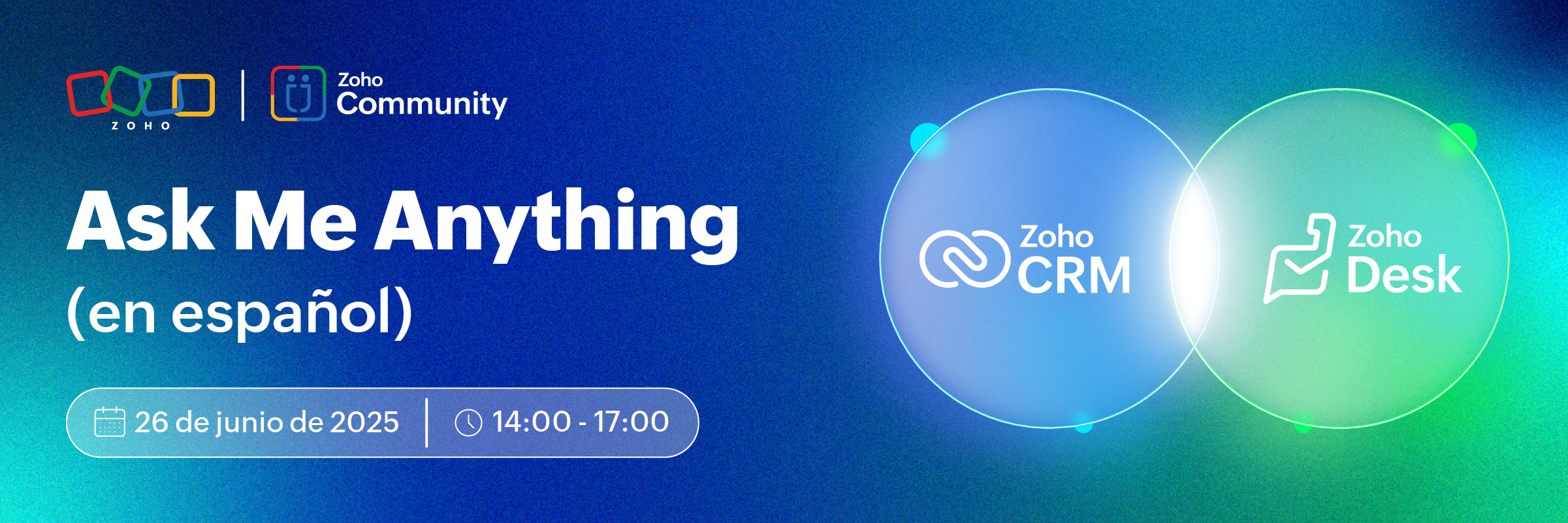 ¿Quieres entender mejor Zoho CRM o Zoho Desk? Nuestros expertos estarán disponibles para responder a todas tus preguntas durante nuestra sesión "Ask me anything". Puedes comentar este artículo y durante tres horas, nuestro equipo estará atento para ayudarte con cualquier duda que tengas. ¡Tu curiosidad es bienvenida!