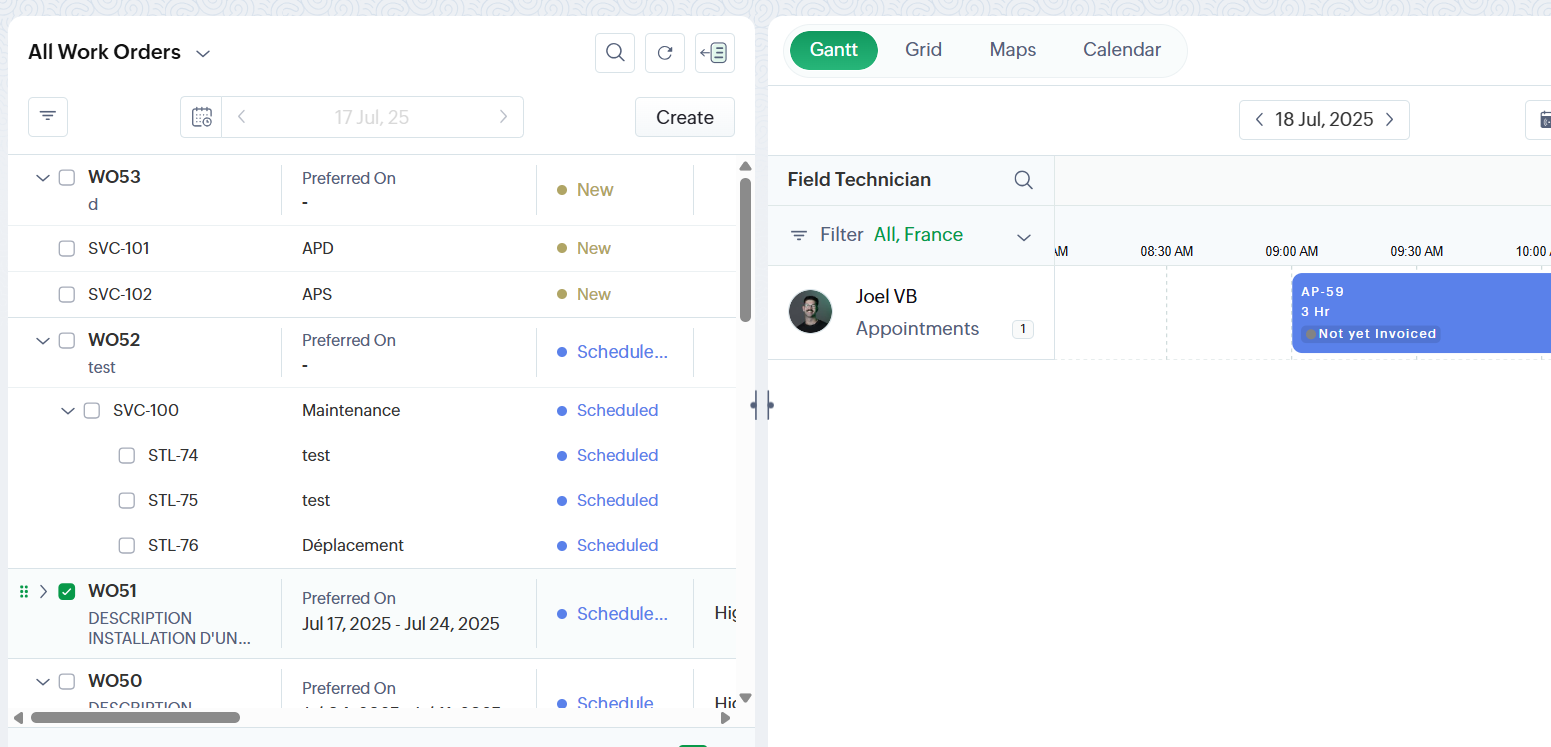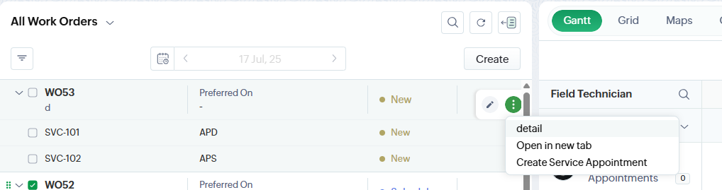 As seen below, the dispatcher should click on "detail" in order to view the number of hours planned per service task.