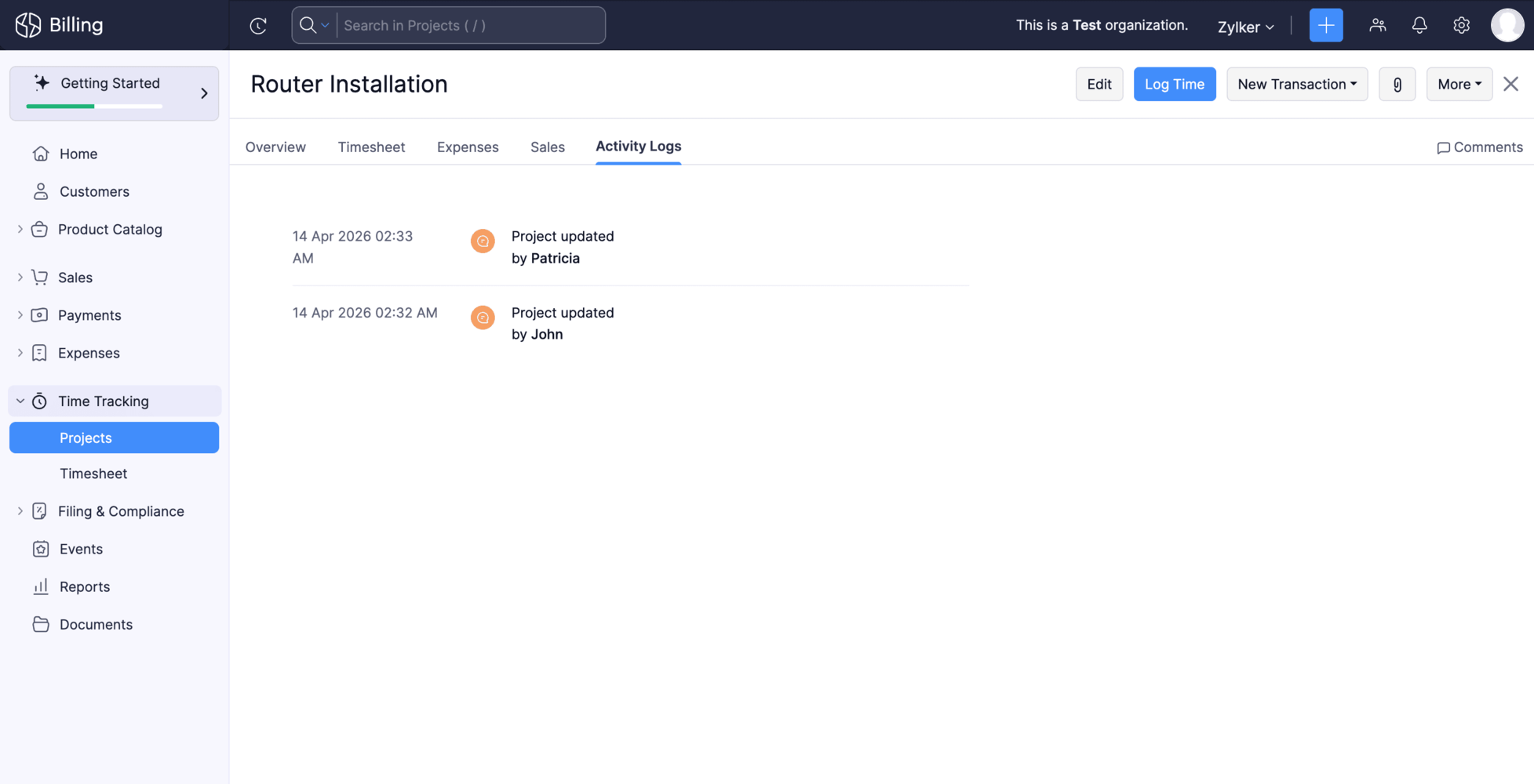 Track Activity Logs for Projects