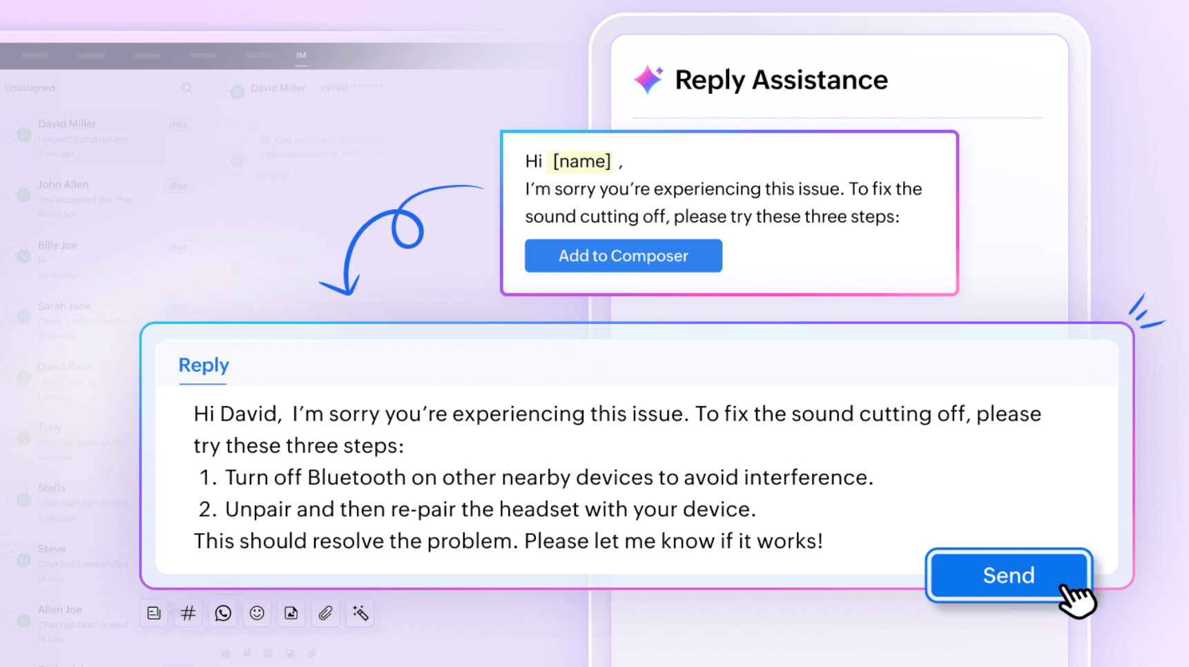 Reply assistance for ticket conversations and IM chats (iOS and Android)