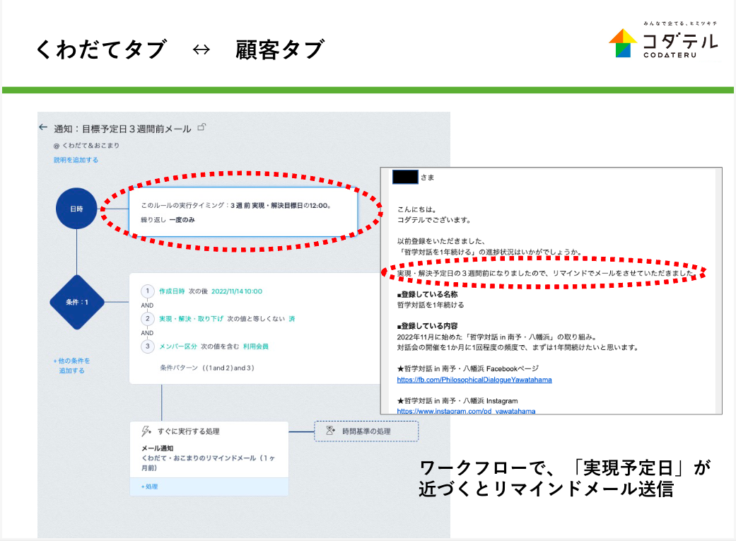 ワークフローで設定した日程に近づくとリマインドメールを送信