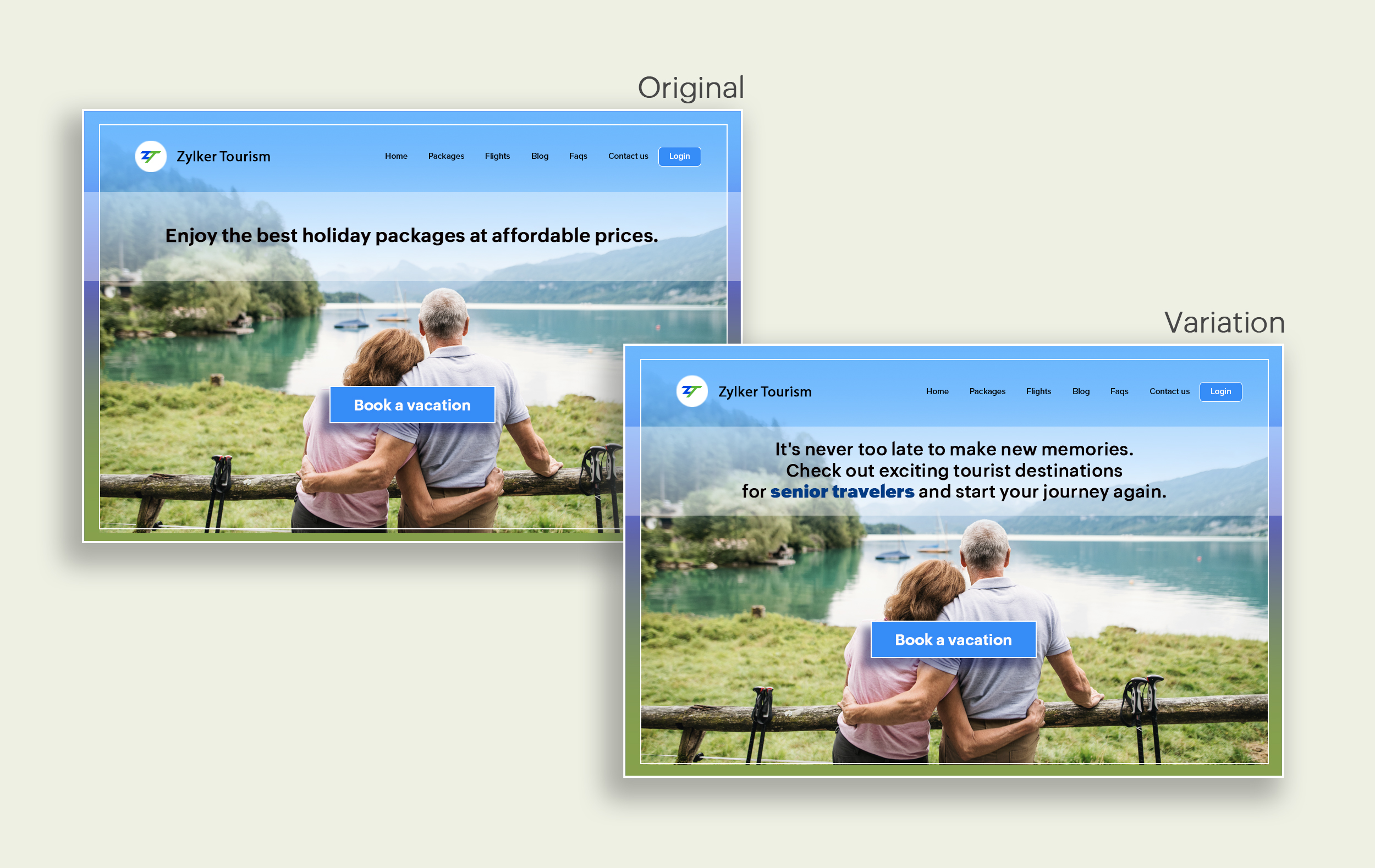 Example: Say you're running a Facebook Ad for older travelers, and the post-click landing page shows the most relevant tourist packages, flights, and hotel stays based on their interests. Now compare the old and new headline messages below to see which version of the message sounds better.