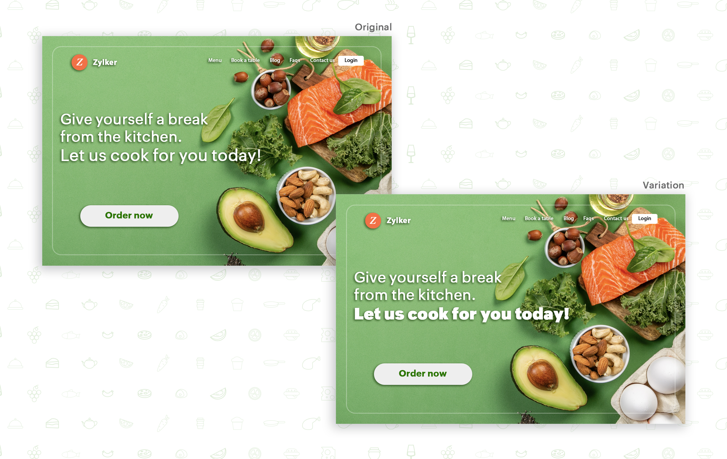 Say you own an online food delivery website, and you want to test the color and font of your homepage headline for better clickthrough rates. Take a look at the before and after images of the headline below. Which one you think will attract more eyeballs?