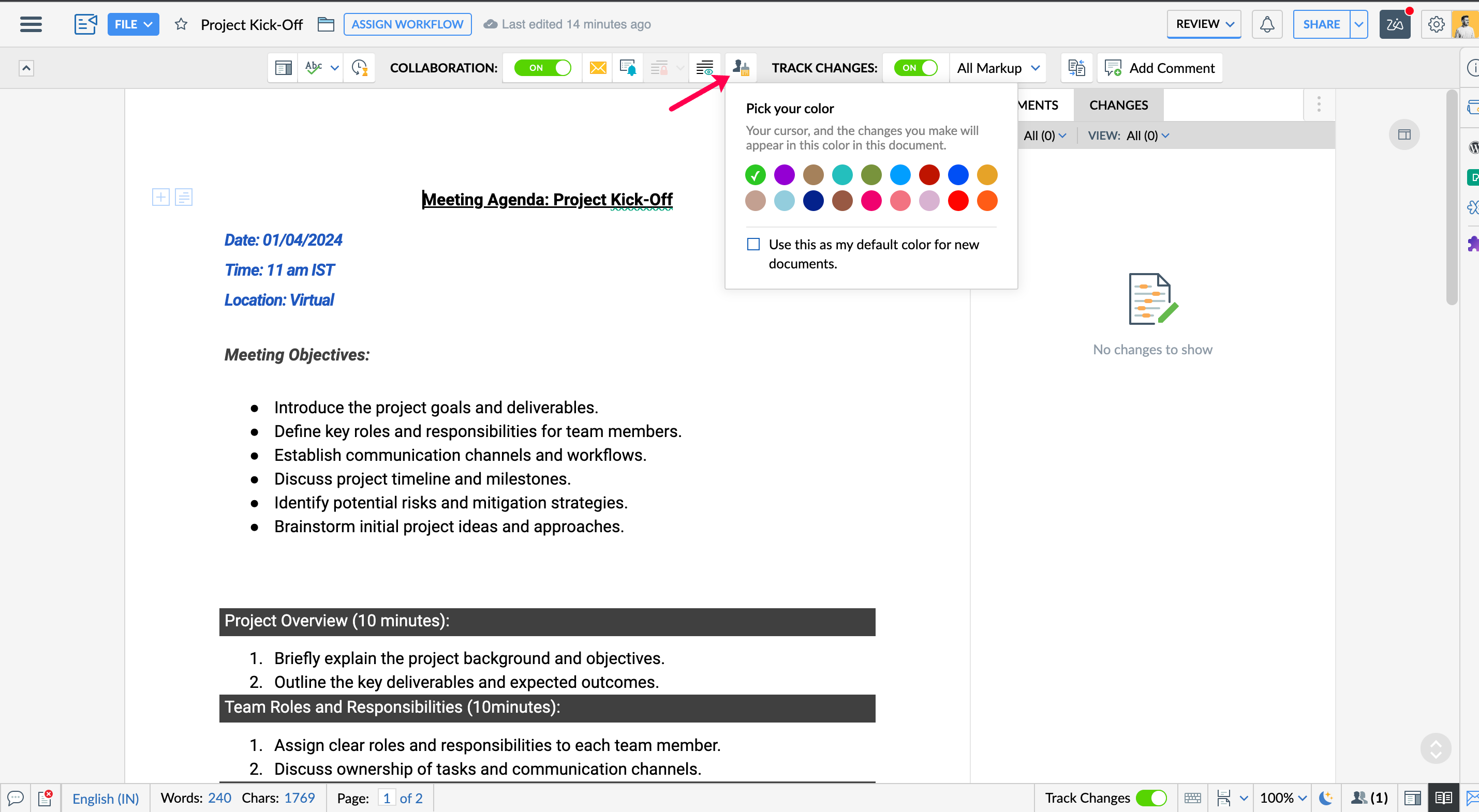 - Choose a custom editing color to differentiate your edits from others, making it easier to track.