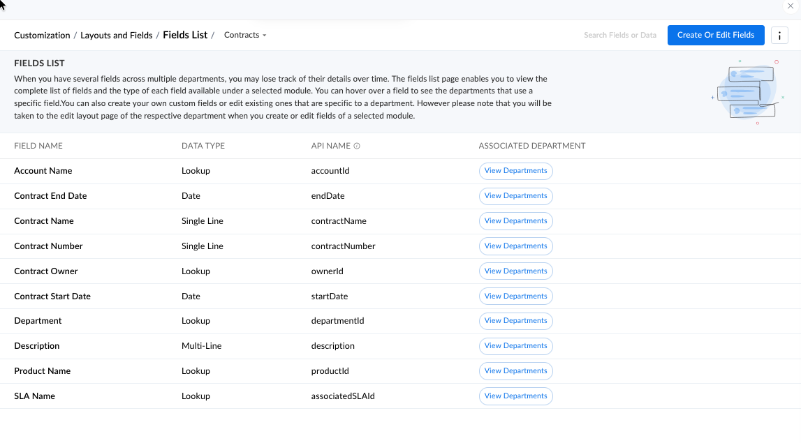 • Discrepancy in Contracts with Fields list/Layout
