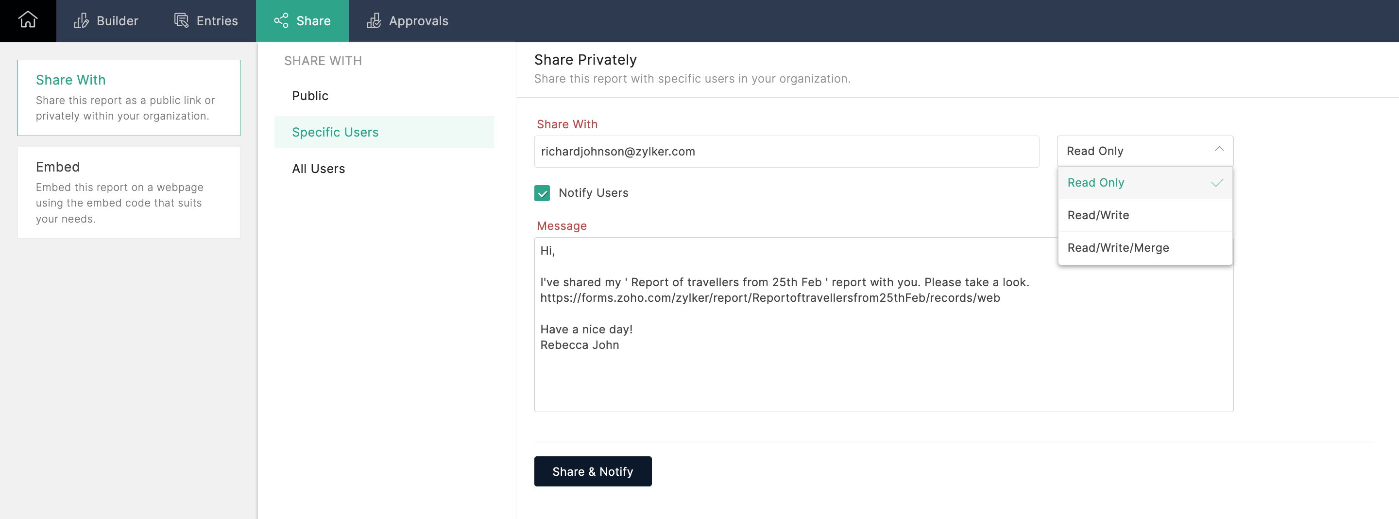 Sharing forms: Enabling access to submissions for users in Zoho Forms