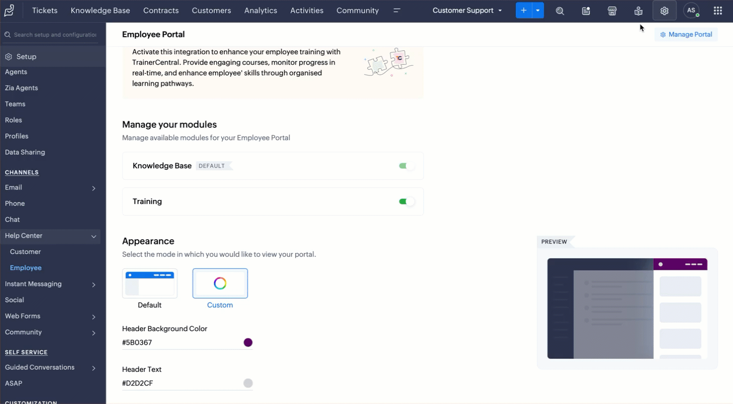 Well, with this goal in mind, we have introduced the employee self-service portal and Training module (powered by TrainerCentral) in Zoho Desk.