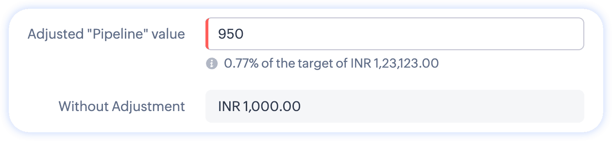Thus, to help you make informed decisions based on realistic and plausible numbers, we've added the ability to adjust your open deals revenue.