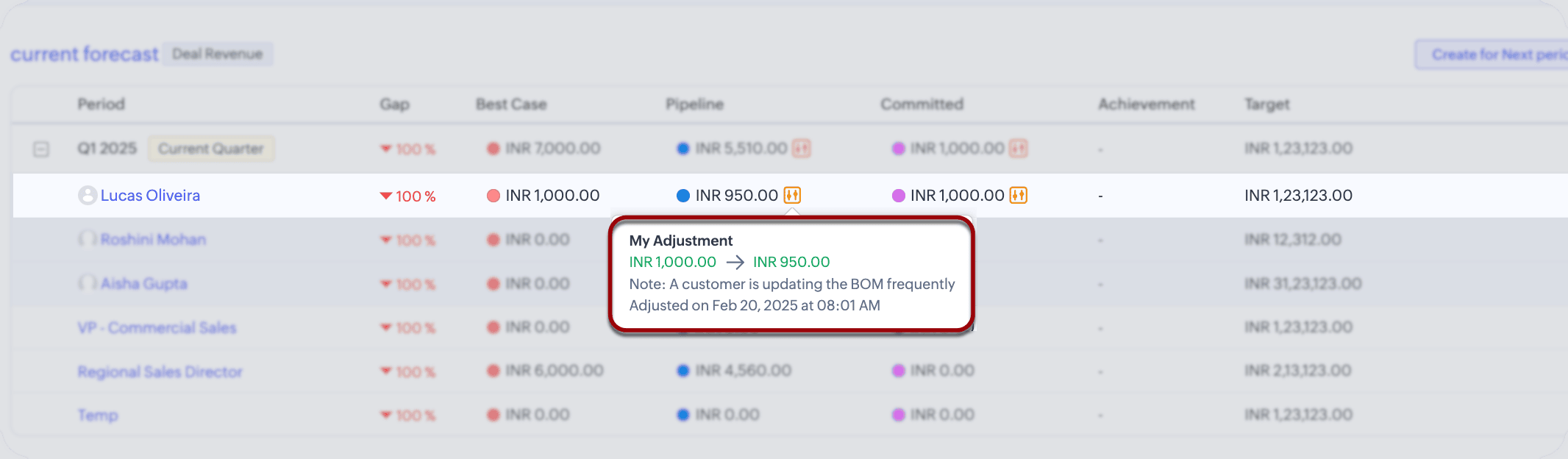 There—that's how you can adjust forecast revenue in your report. However, adjusting is not an inherent ability; a forecast manager or the admin has to enable it from the forecast configuration page.