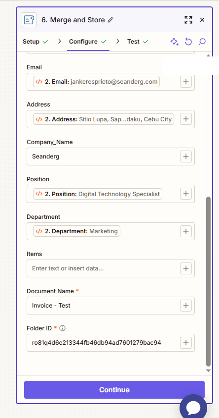I have the following layout for a Zoho Writer Document. As you can see there is a repeating subform taking in "Items". I am trying to make a Zapier integration with it, and I can see there is 1 field saying: "Items", but it does not specify how I'm supposed
