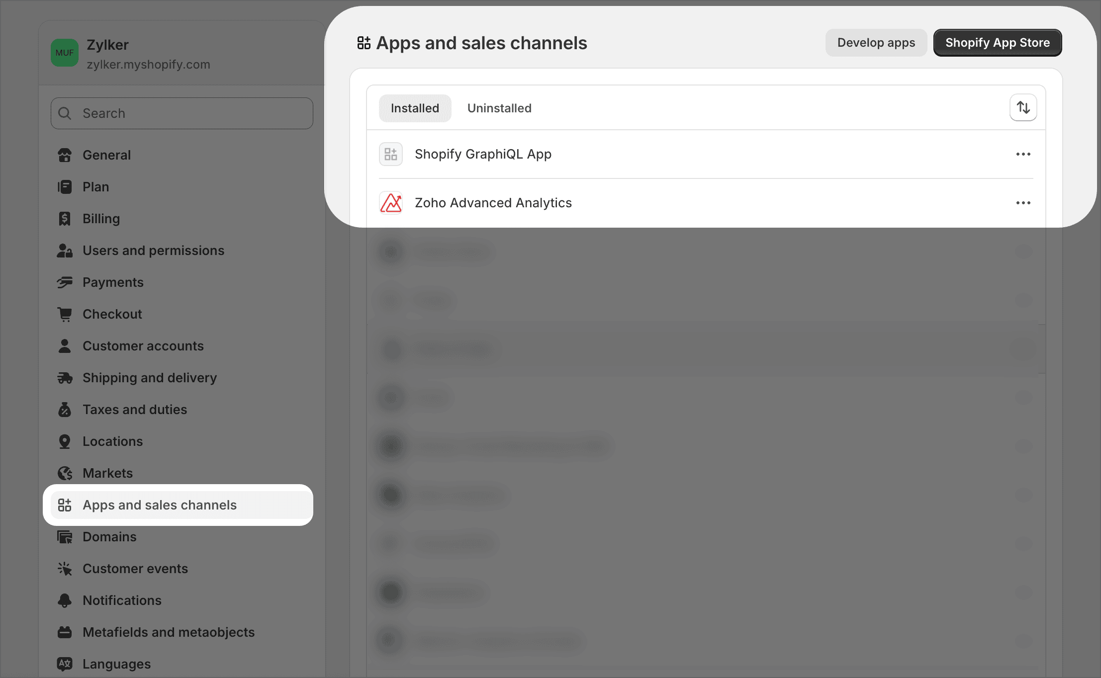 - Navigate to Apps and Sales Channels > Develop Apps.