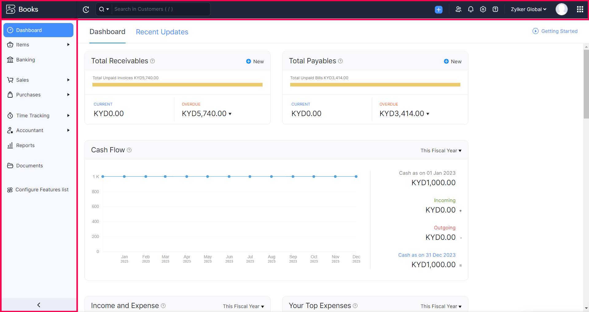 We have reorganized the top band and the side navigation bar with redesigned icons and tooltips to help you navigate Zoho Books effortlessly. Also, we have increased the contrast of grey widgets and fonts throughout the app for improved readability.