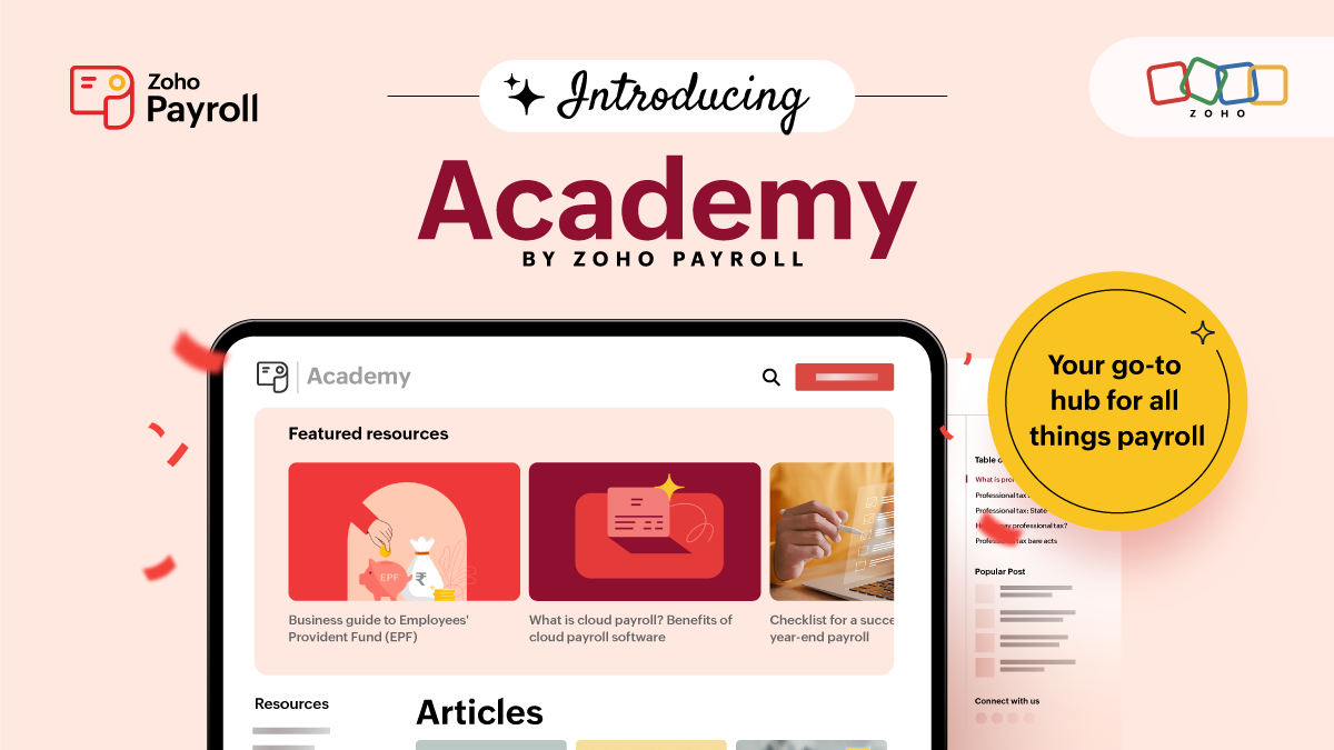 Hello! We're thrilled to launch our newest payroll resource hub - Academy by Zoho Payroll [for India] - the information repository where you can go to learn everything about payroll.