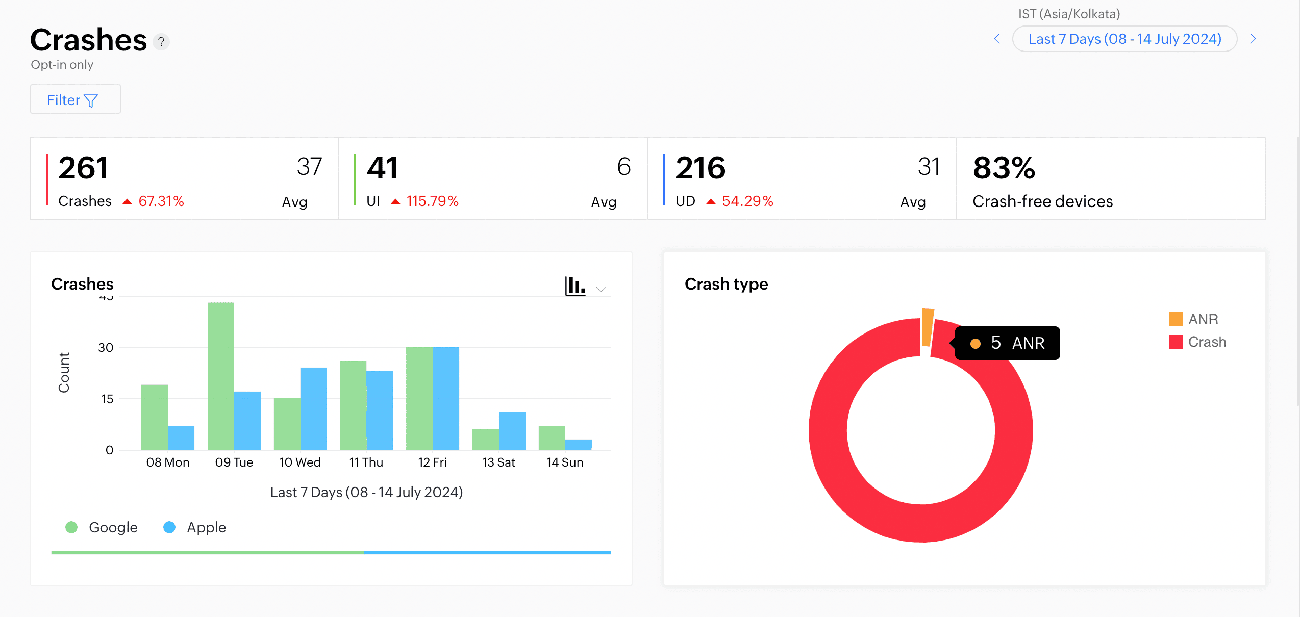Crash and ANR dashboard in AppticsApart from adding ANRs, we have made a few more enhancements to our Crash module.