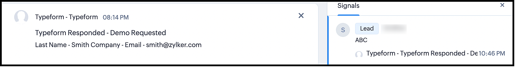 Let's consider you have a form in Typeform, where you get the details such as the Last Name, Company, Email. You also have a question if the user wants a demo of the product, and if yes, a convenient date for the same.