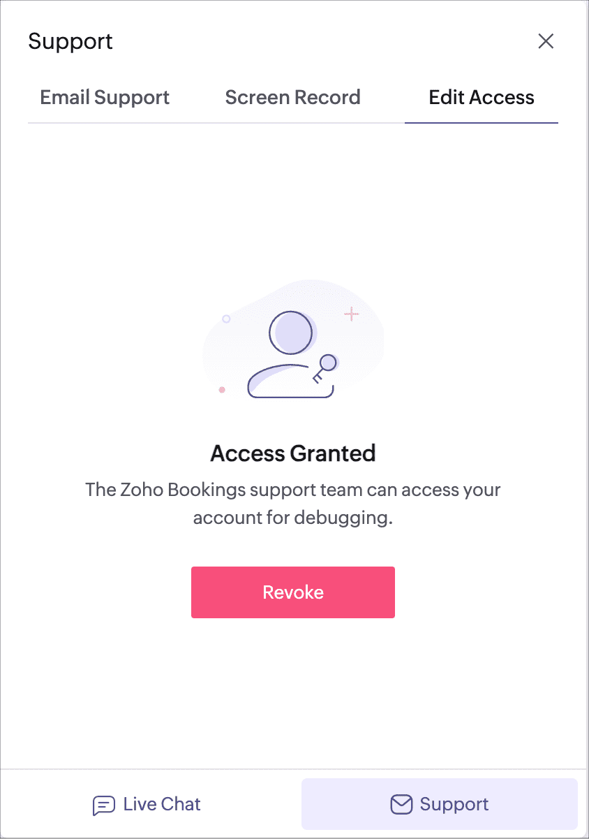 Please note that the access provided is very secure, and the support team can only access your Bookings tool for the purpose of troubleshooting and resolving the reported issue. Rest assured that the technician will not have access to your account homepage, setup page, subscription page, any other application within your account, or your password.