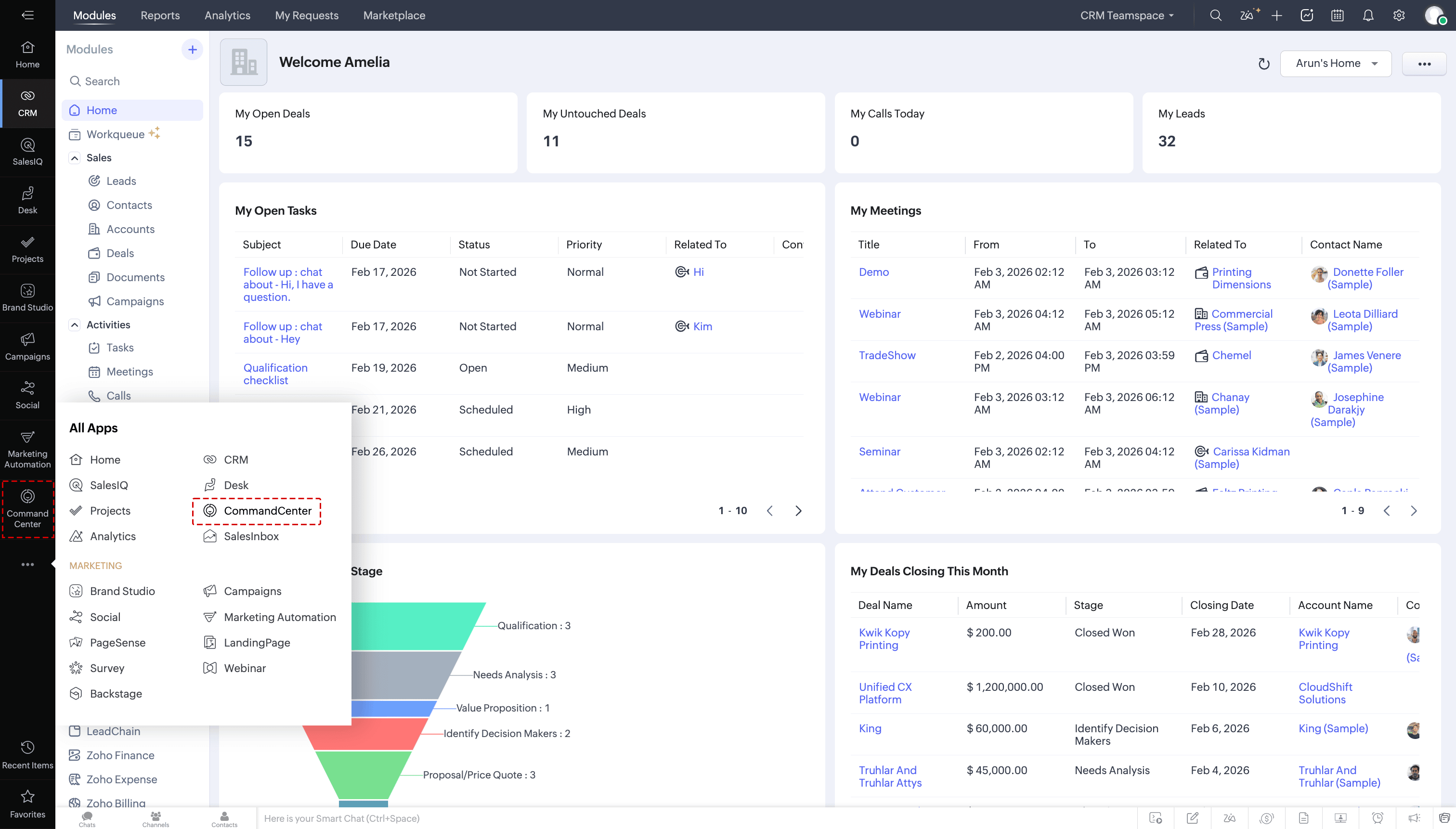 Navigating your way around CommandCenter in Zoho CRM Plus