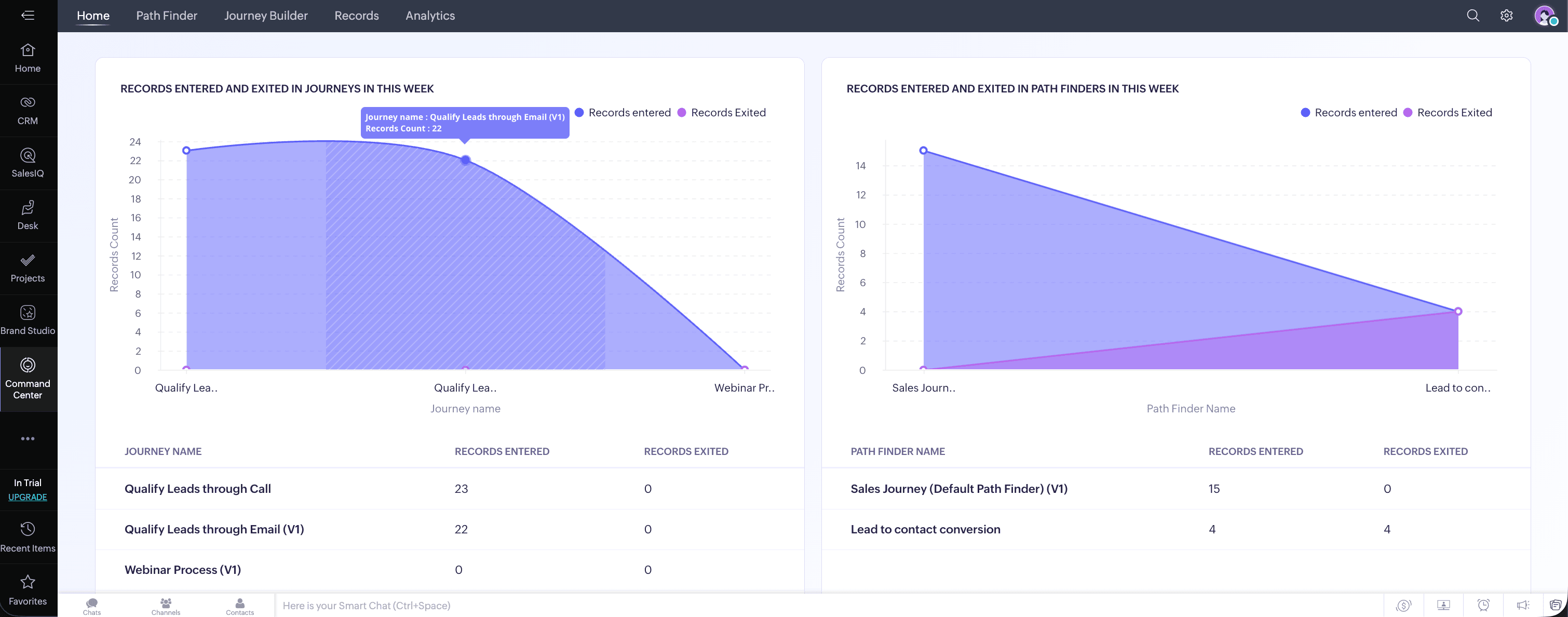 Users who have configured Path Finders and Journeys in CommandCenter 1.0 in CRM can migrate them to 2.0, where they'll be available in CRM Plus's CommandCenter module and accessible from the Experience Center module in CRM. Learn more: Migration guide