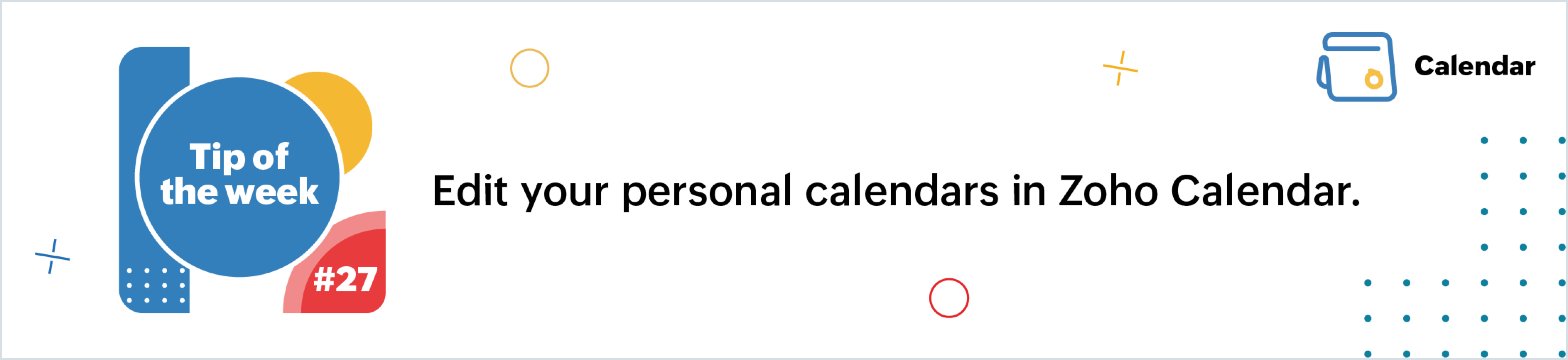 Tip of the week #27: Edit personal calendars in Zoho Calendar.