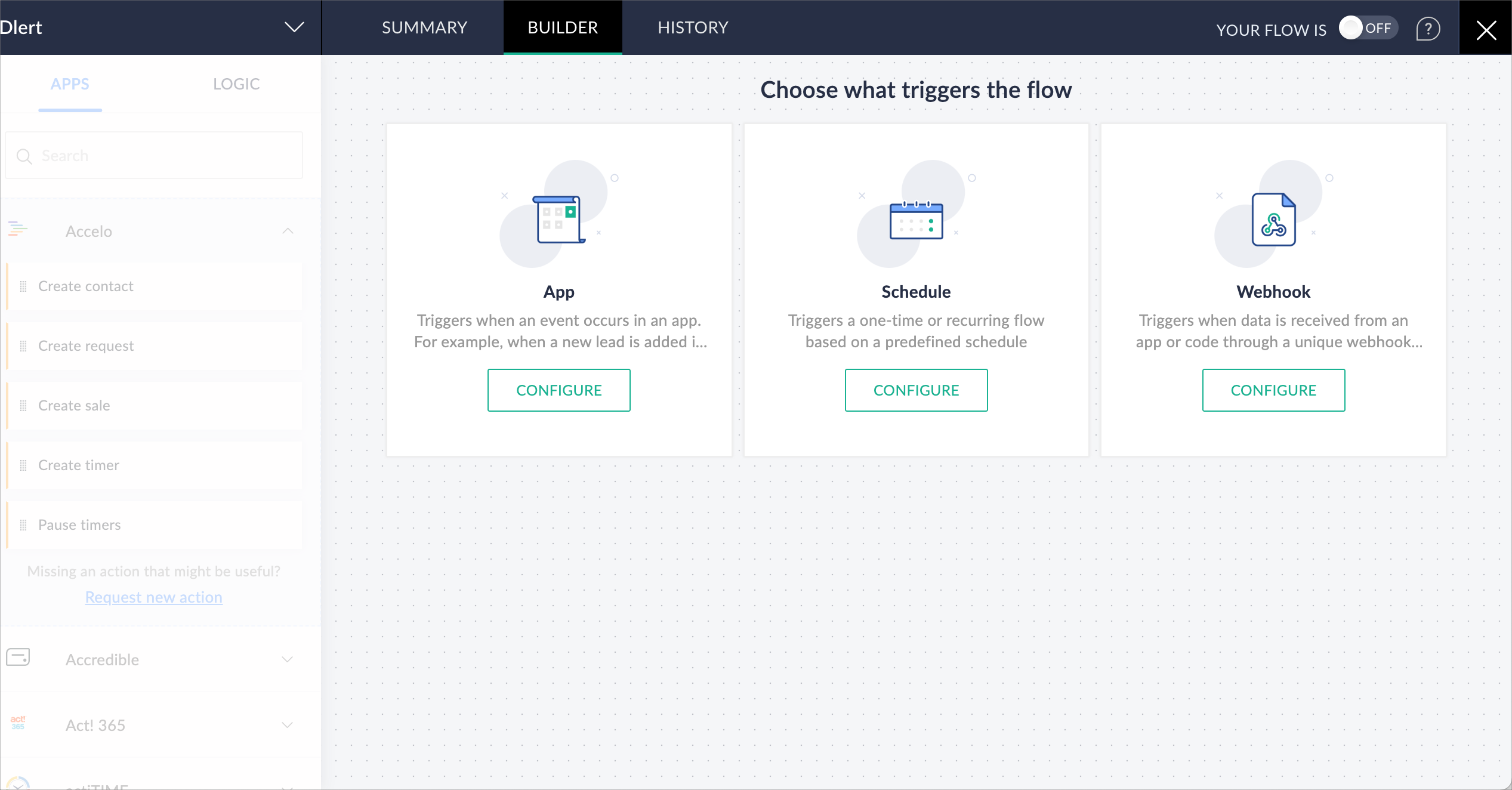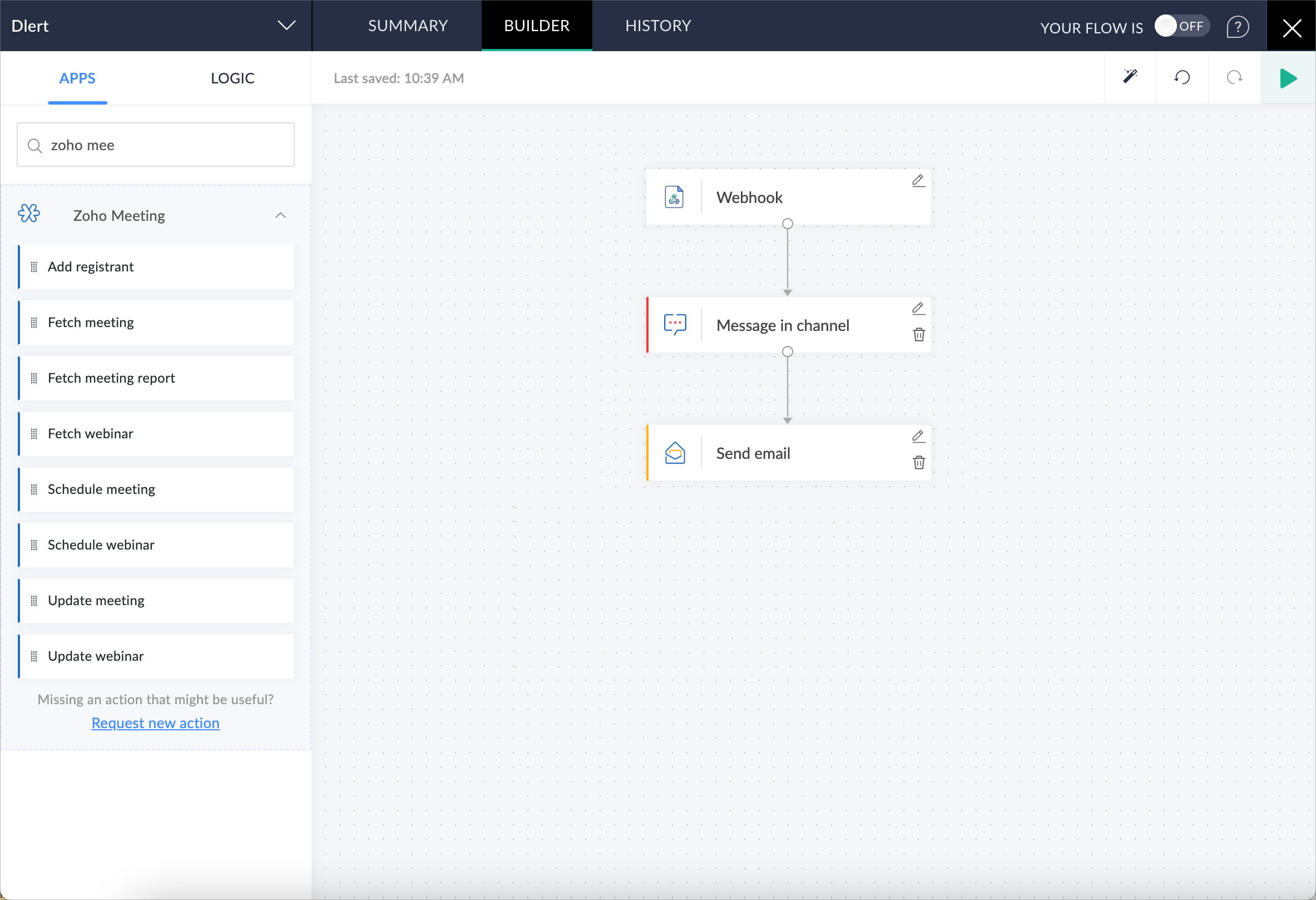 Now, come back to Zoho Flow to define the actions to be executed when the alert is triggered.