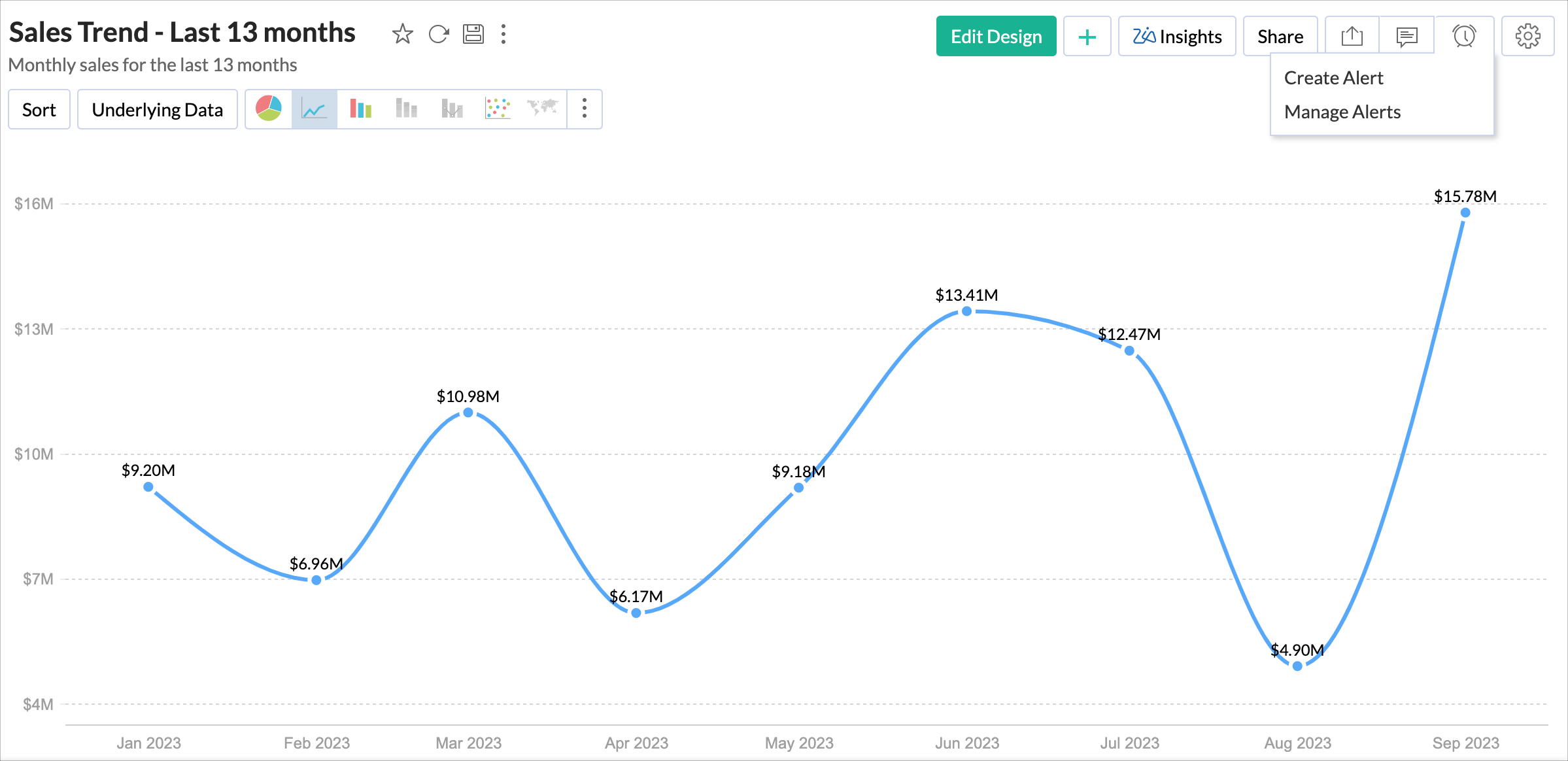 Are you tired of manually monitoring the data and afraid that you might miss key changes? Worry not. Zoho Analytics will monitor your data, and alert you when there is a significant change in any of the key business metrics. This enables you to take appropriate timely actions, and to seize the right opportunities.