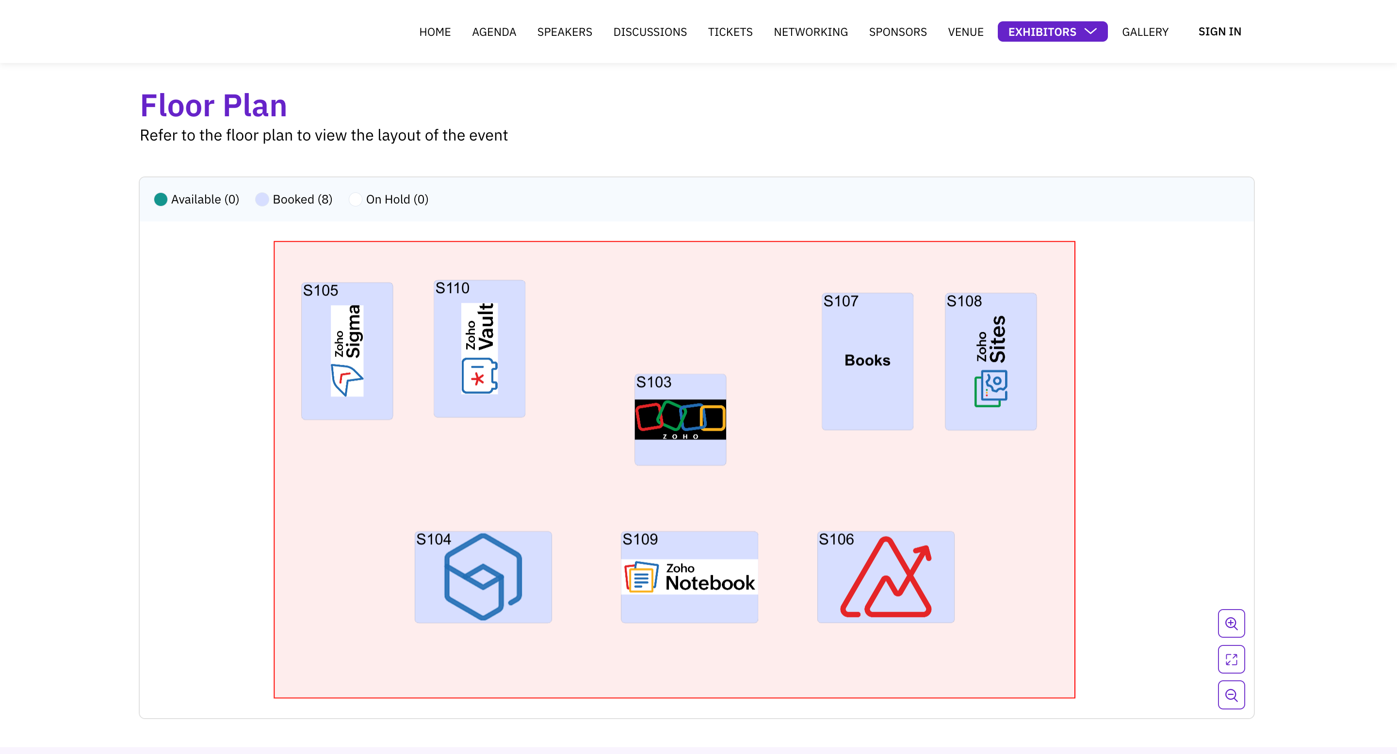 - Tailored Booth Display: Choose to display exhibitor logos or names for booked booths.