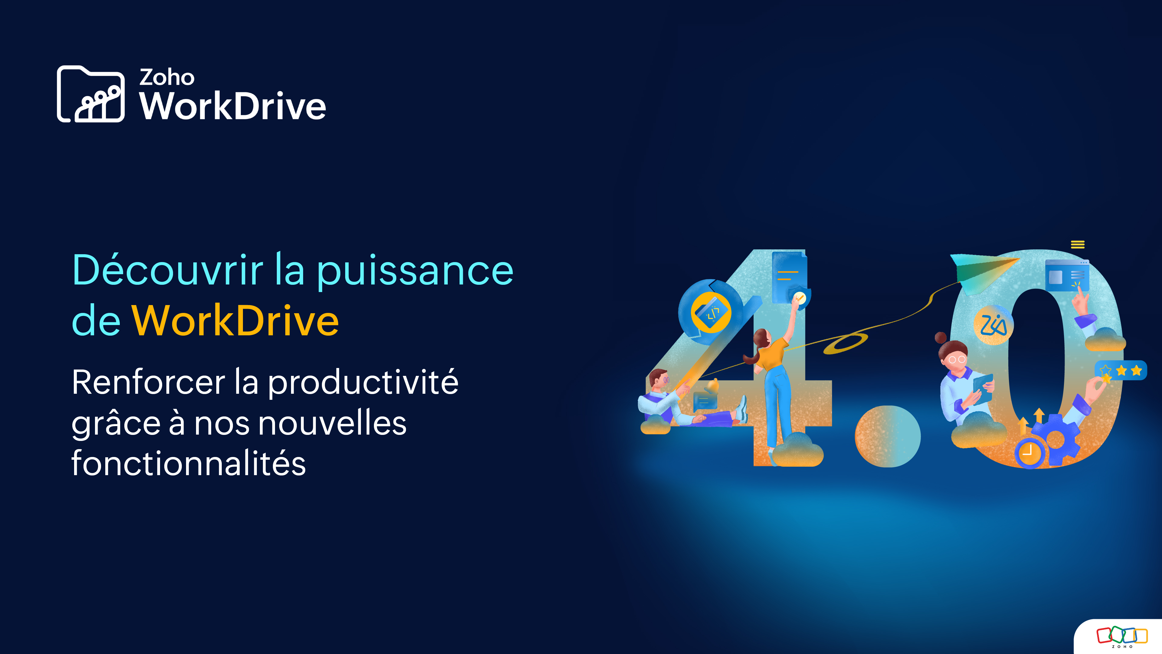 Le WorkDrive 4.0 stimule l'efficacité et la connectivité des équipes dans l'environnement de travail hybride. Nous sommes de retour avec des mises à jour qui permettent aux entreprises de créer des applications, d'automatiser les workflows, d'enrichir les expériences des utilisateurs, de maintenir la conformité et d'améliorer la productivité globale.