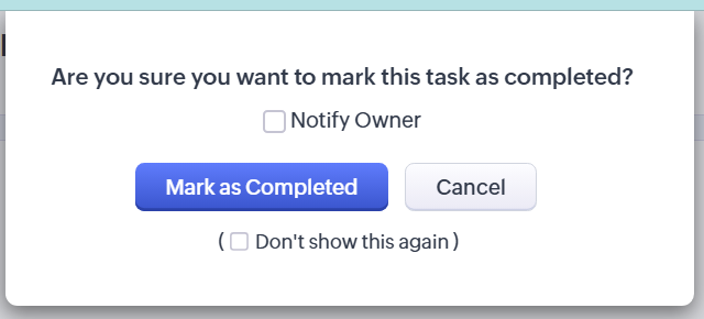 When completing a Zoho CRM Task, it would be very helpful if there was an option to "Complete and Create Follow-Up Task" in the pop-up which appears.